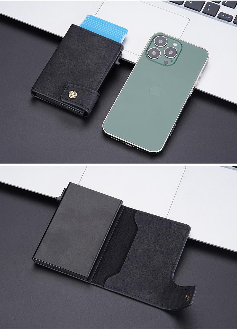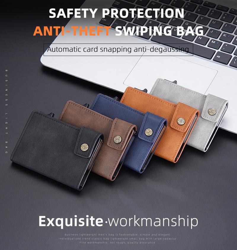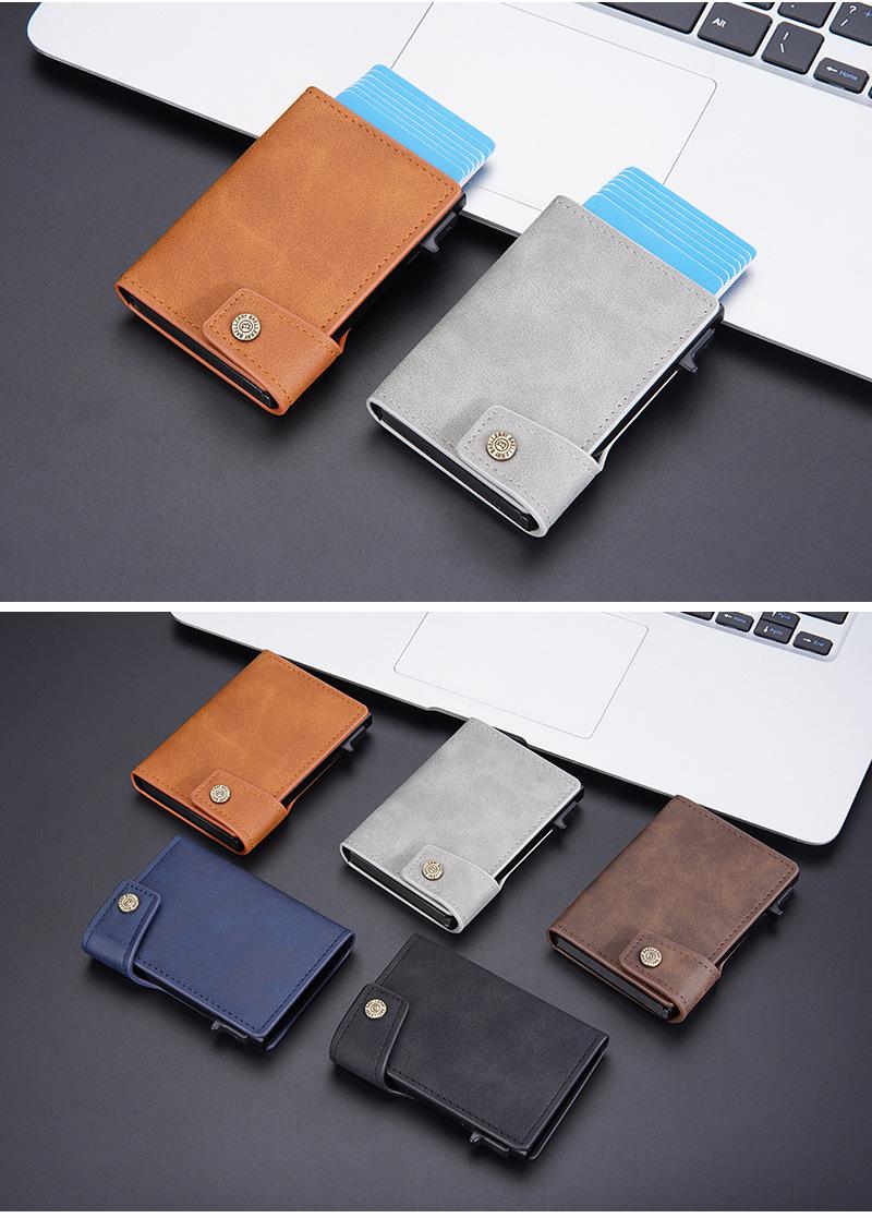 Baellerry nueva bolsa para tarjetas para hombre transfronteriza retro de empuje lateral elástica para tarjetas caja metálica de aluminio anti-magnética tarjetero simple al por mayor