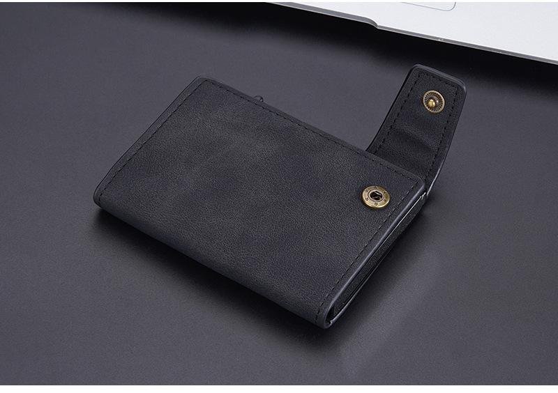 Nueva cartera corta para hombre Baellerry, cartera retro multitarjeta con borde cruzado, monedero de cuero aceitado con doble cremallera