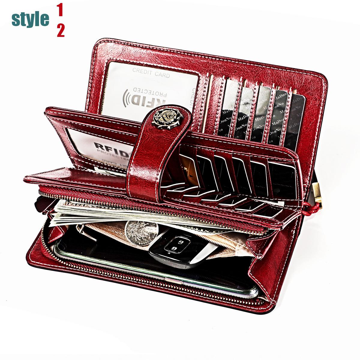 Bolso de mano de cuero genuino para mujer, cartera con cremallera larga, multifuncional, de gran capacidad, con RFID, nuevo estilo 2018, venta al por mayor¥24
