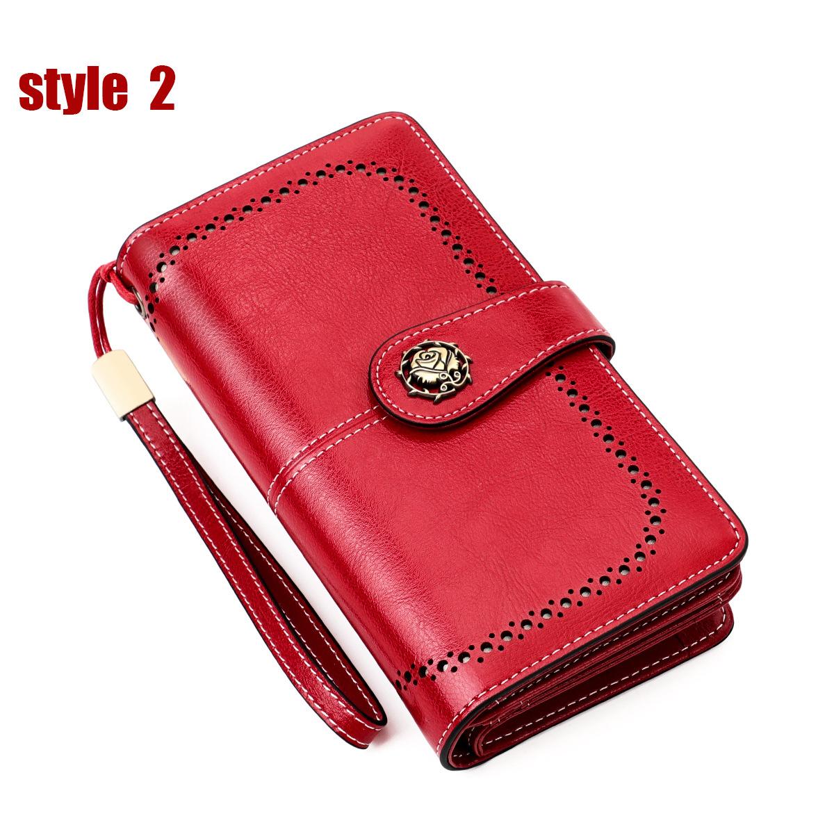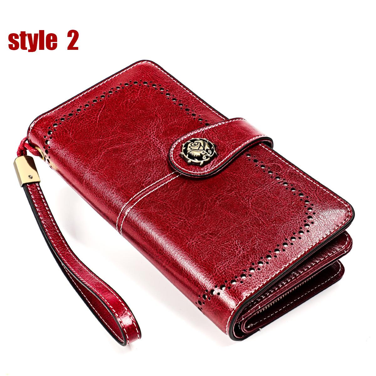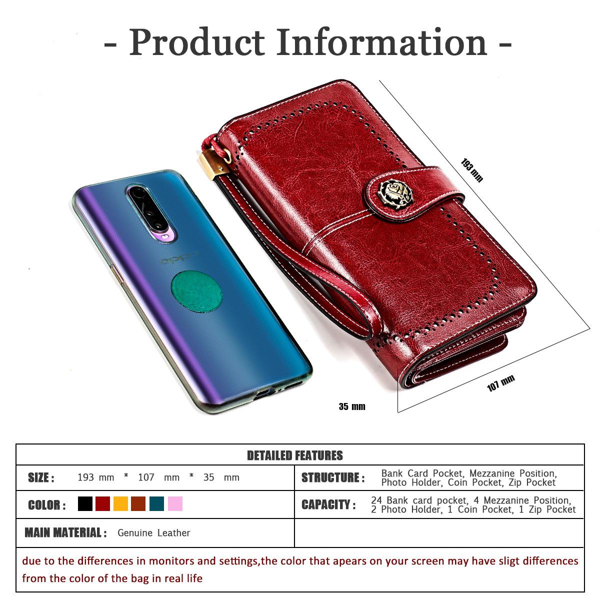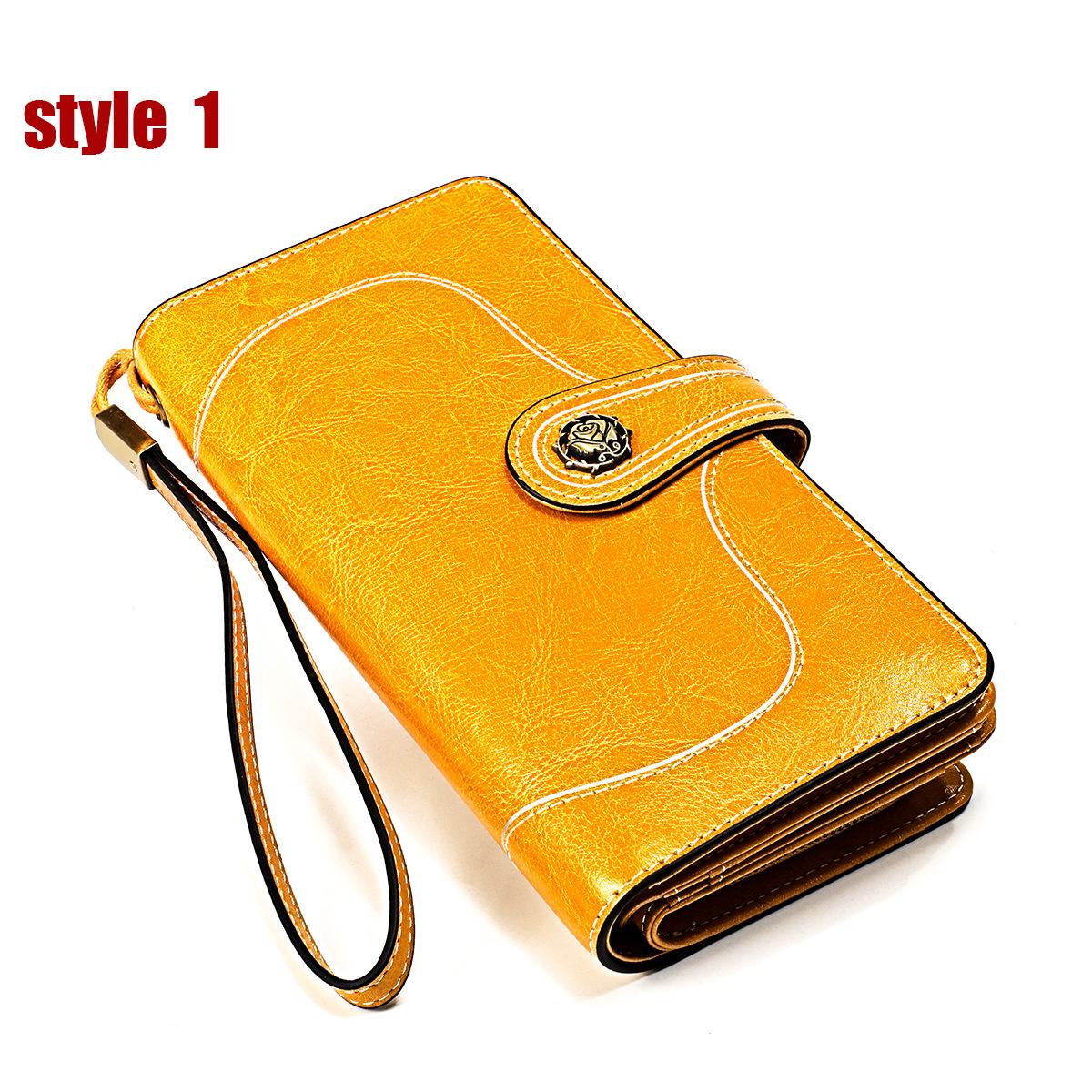 Cartera de mujer de cuero genuino anti-RFID de capa superior 2018, versión coreana larga, billetera de piel de vaca encerada con ranura para múltiples tarjetas para mujer¥57