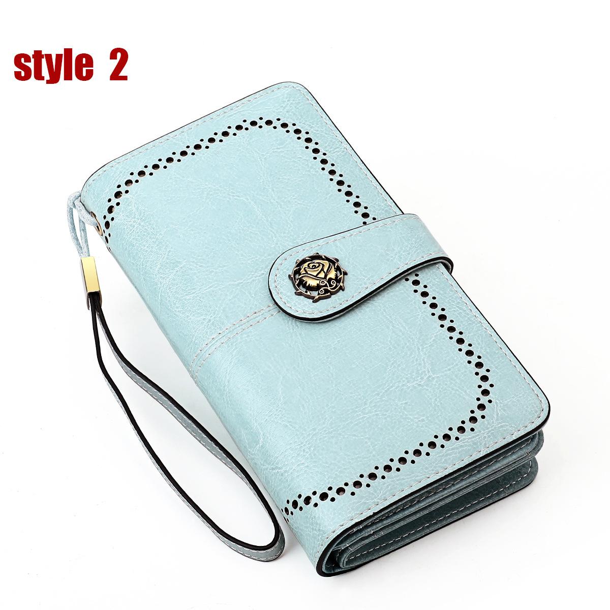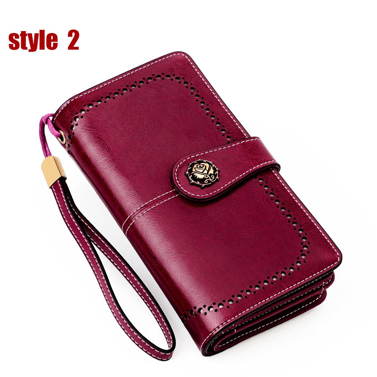 Cartera de mujer RFID de cuero encerado de origen transfronterizo, billetera de piel de vaca de primera capa, billetera triple, monedero largo multifunción¥48