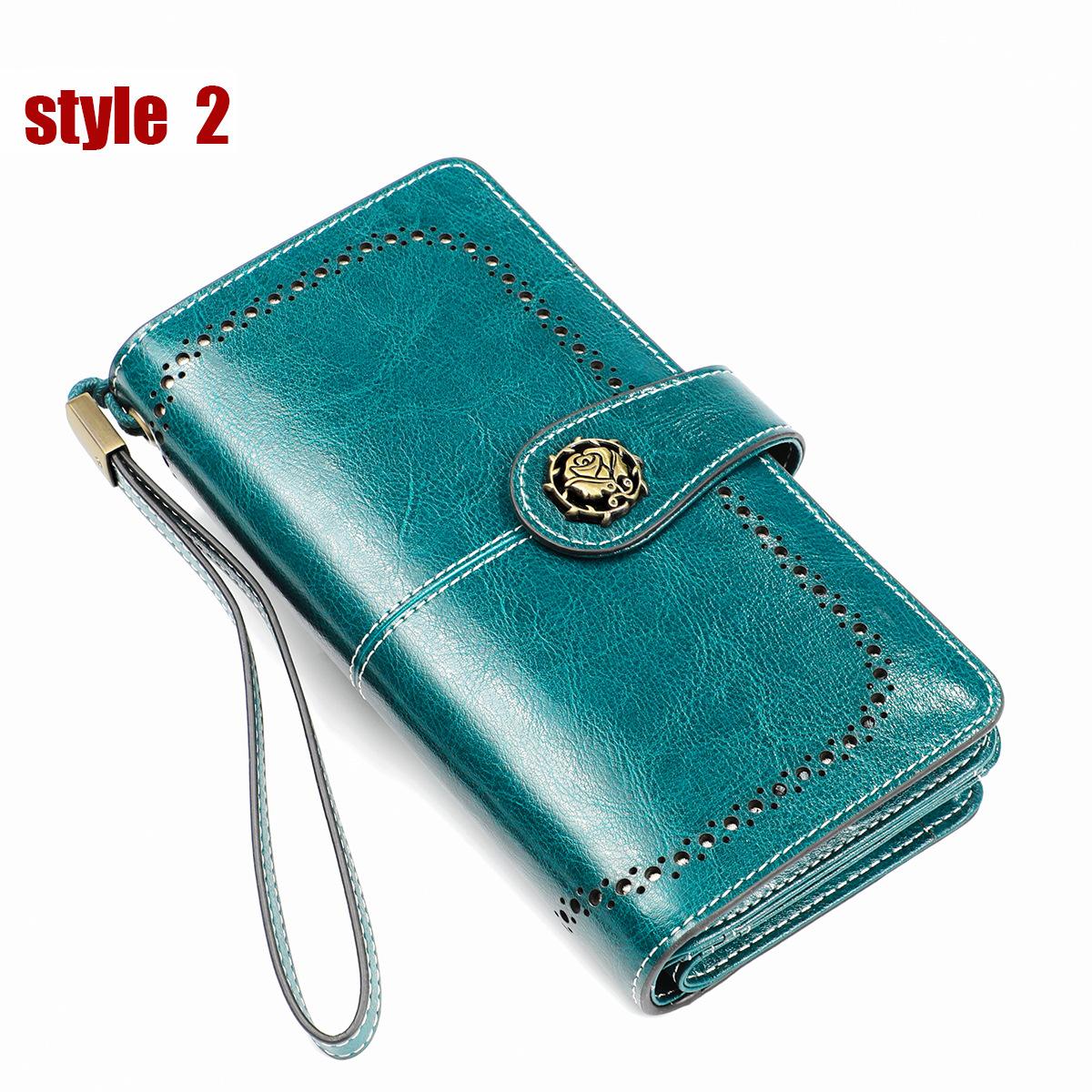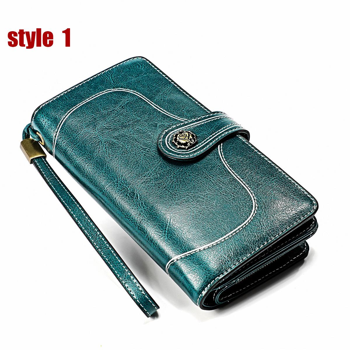 Cartera de cuero genuino transfronteriza 2019 nueva cartera larga de cuero encerado retro europeo y americano para damas bolso de mano multifunción¥53