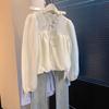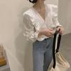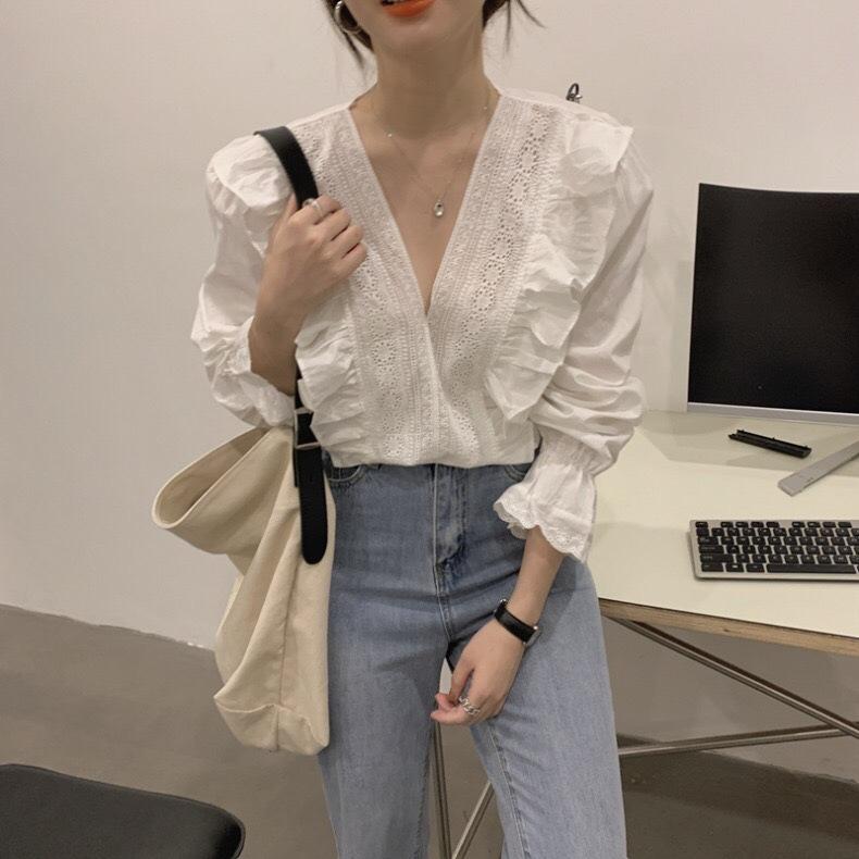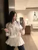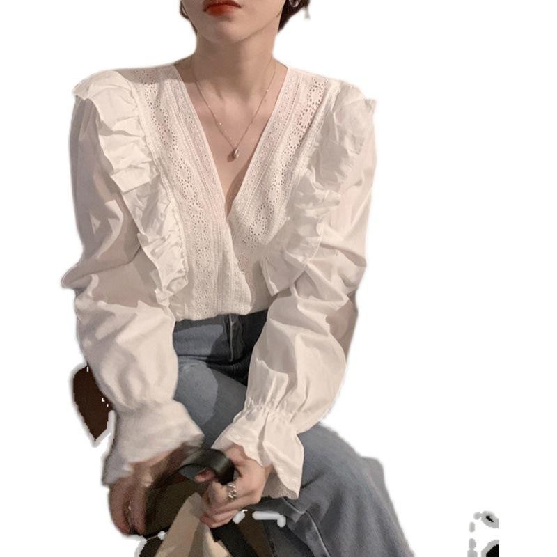 Camisa Estilo Palacio para Mujer Primavera y Otoño 2023 Coreana Diseño con Volantes de Hongo Sensación de Diseño Encaje Cosido Cuello Francés Top
