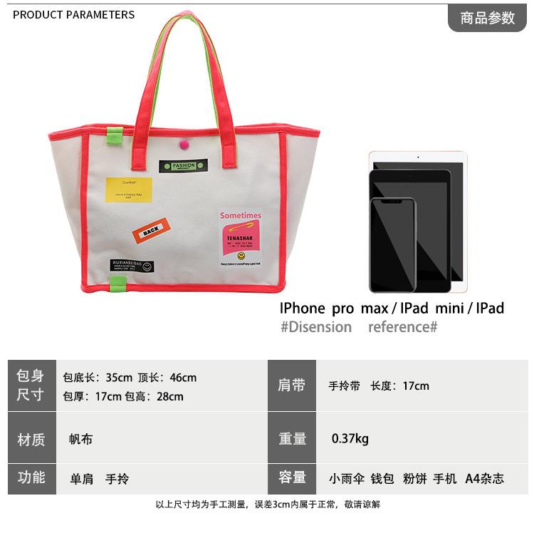 2022 Marca de Moda Bolsa de Lona Bolso de Mano para Mujer Coreano ins Bolsa de Compras de Lona de Gran Capacidad Bolso de Hombro