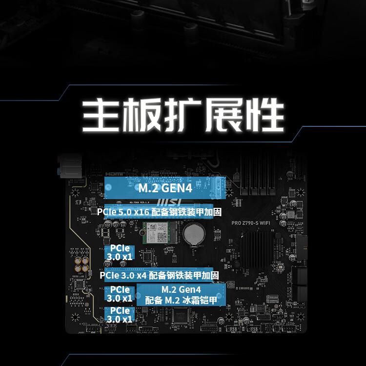 Sistema de alimentación Duet Rail de 12+1+1 fases, partidoPaquete P-Pak DrMOSyInterfaz de Fuente de Alimentación ProCool Dual de 8 Pines de Alta Resistencia, puede soportar establemente el uso diario y el overclocking ligero de procesadores de alto rendimiento como el i9-13900Kde.msi.com。