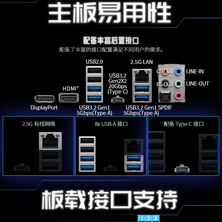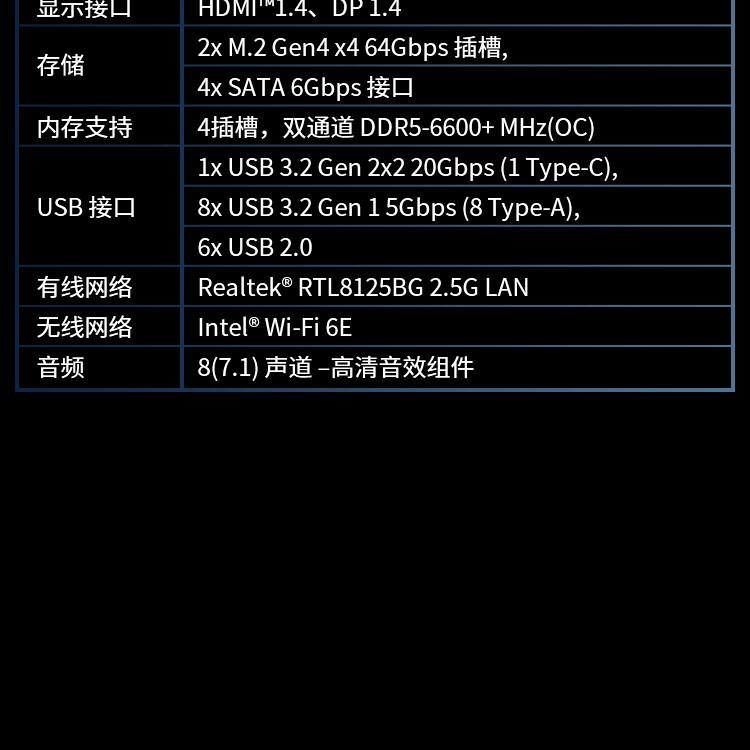 Ranuras y Capacidad:4 ranuras DIMM DDR5,Soporte máximo de memoria de doble canal de 256 GB, adecuado para multitarea y operación de software profesional.