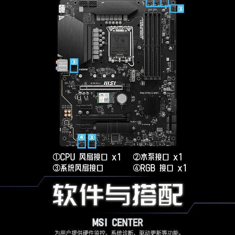 Múltiples interfaces de ventilador:Proporciona 4 interfaces para ventiladores PWM/DC de 4 pines y 1 interfaz para bomba de agua, soportaCentro de Ventilación Control Inteligente de Temperatura, puede ajustar automáticamente la velocidad según la cargade.msi.com。