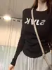 Top retro de manga raglán estilo americano con costuras de color contrastante para mujer 2023 nuevo ajuste ceñido versátil camiseta corta estampada de manga larga