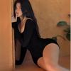 Mono corto ajustado con tirantes, espalda descubierta, cuello en U, manga larga, para mujer europea y americana transfronteriza, otoño de 2024