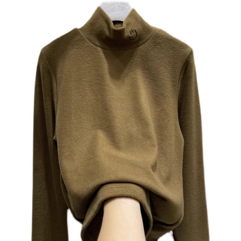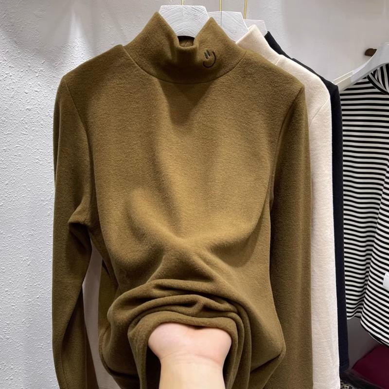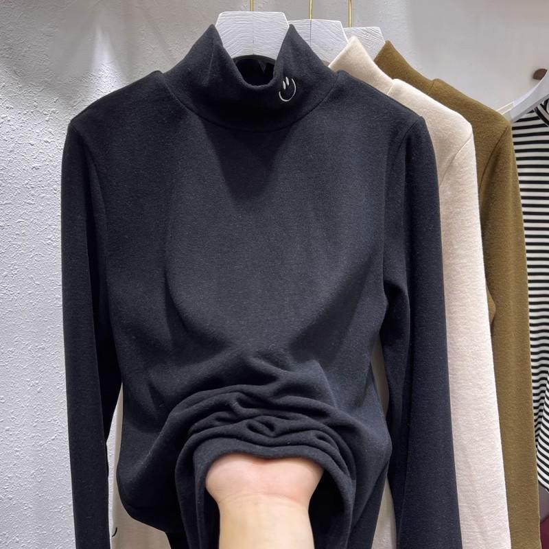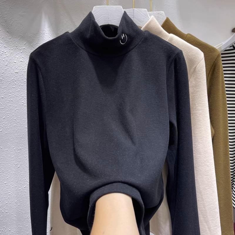 Playera de cuello alto pequeña de alta calidad extra gruesa de terciopelo para mujer otoño e invierno Nueva camiseta interior ajustada con forro polar top cálido
