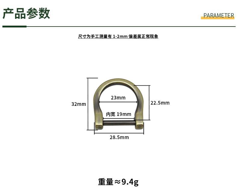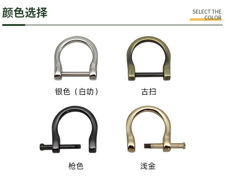 Tornillo móvil Hebilla D tornillo desmontable 1.9cm de ancho hebilla bombilla accesorios de herrajes para equipaje tornillo hebilla U