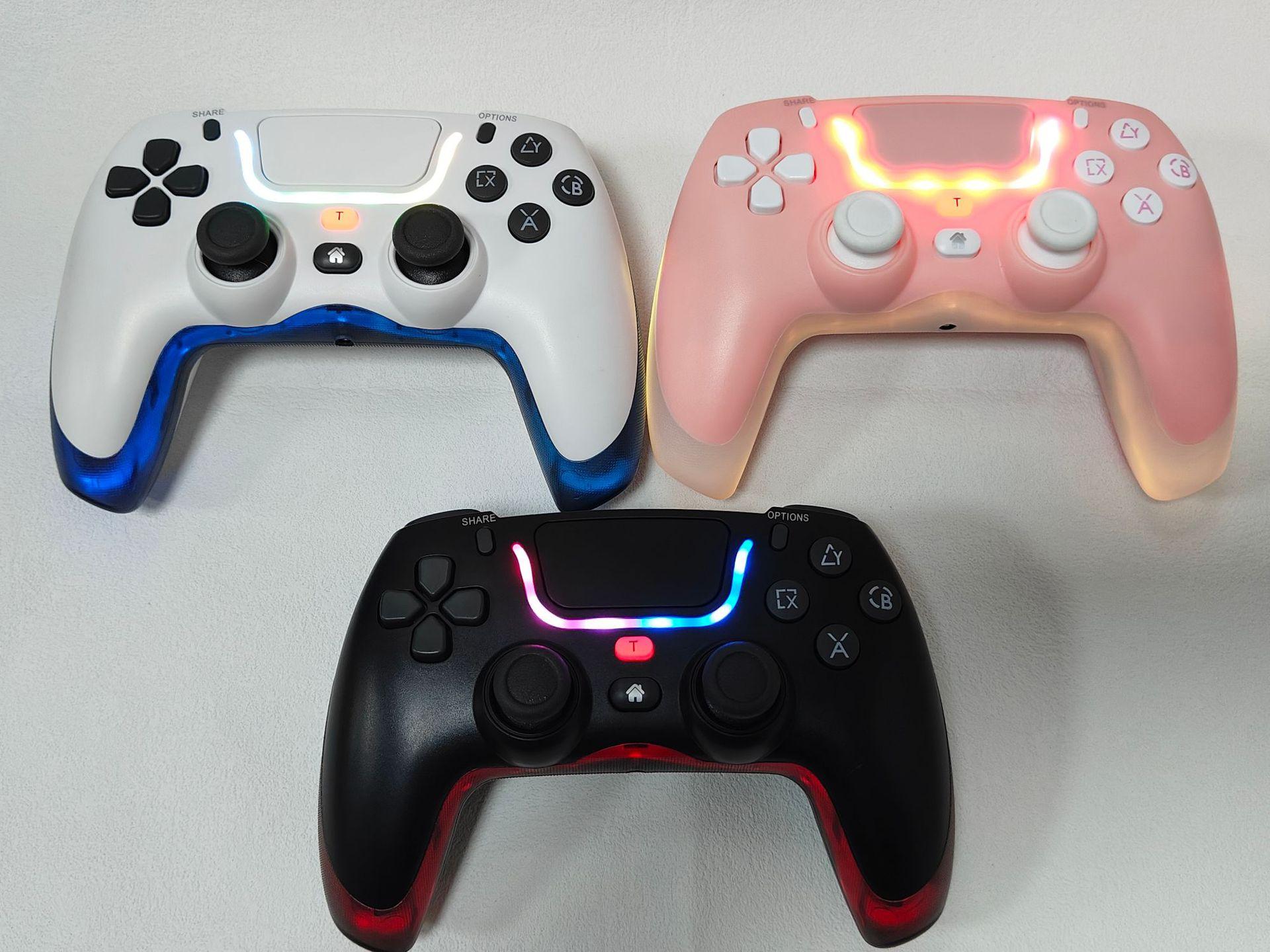 El mando es compatible con consolas PS3/PS4/PS5 (solo admite jugar juegos de PS4 en consolas PS5), ordenadores PC, televisores, consolas SWITCH, teléfonos Android, modo estándar HID y varios juegos, juegos MFI para teléfonos móviles Apple, admite configuraciones macro extendidas en la parte trasera (se pueden configurar hasta doce teclas), admite ajuste de la intensidad de la vibración del motor, un total de cuatro modos, el mando tiene luces frías y puede ajustar 6 modos.
