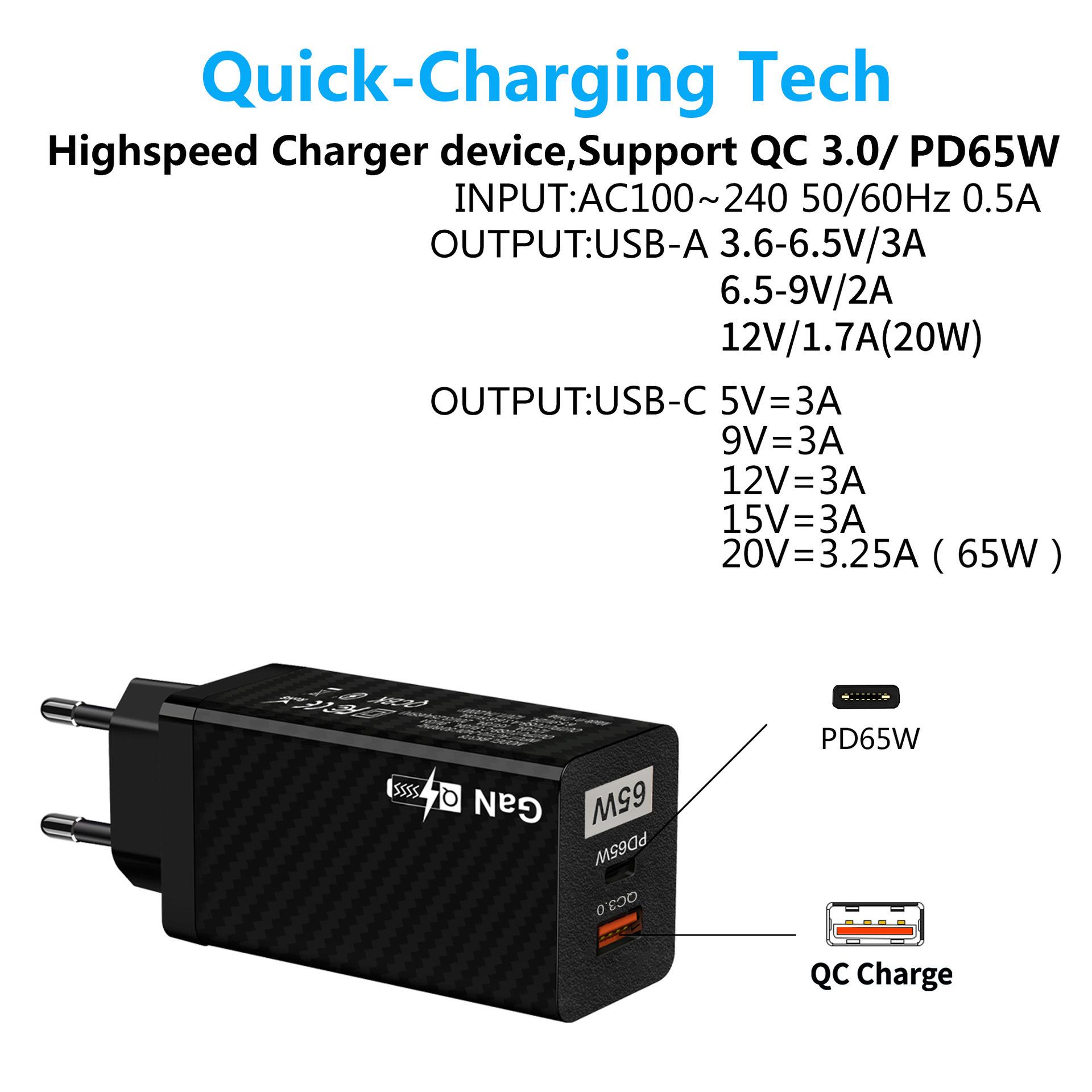 Voltaje de salida: USB-C 5V/3A 12V/3A 15V/3A 20V/3.25A (65W)