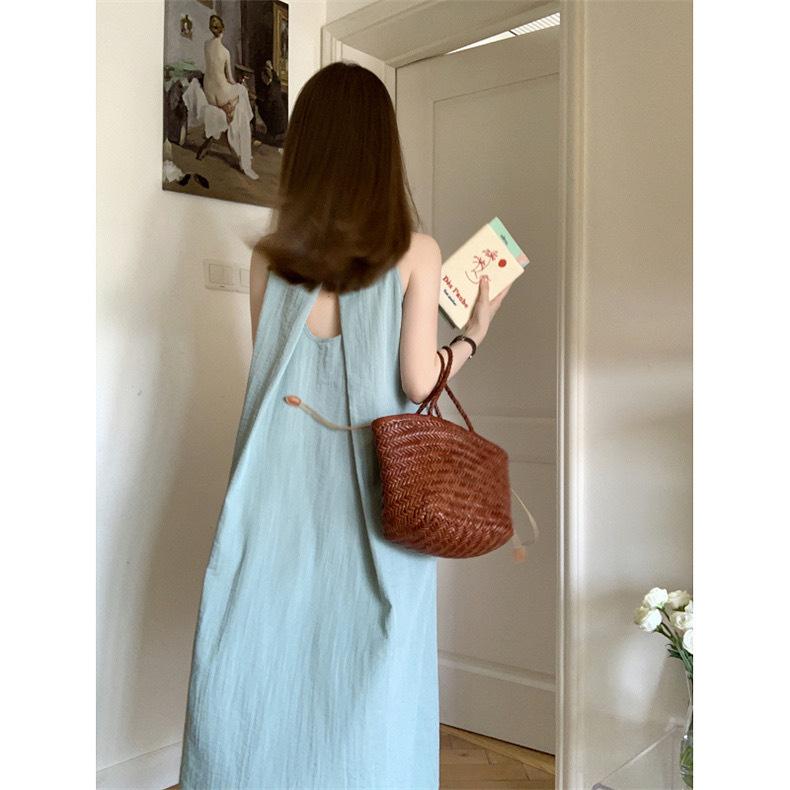 Vestido Chaleco sin Mangas Vacaciones en la Playa para Mujer Verano 2025 Nuevo Casual Suelto Tirantes Falda Larga