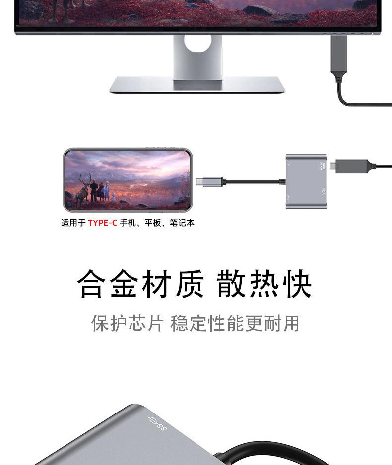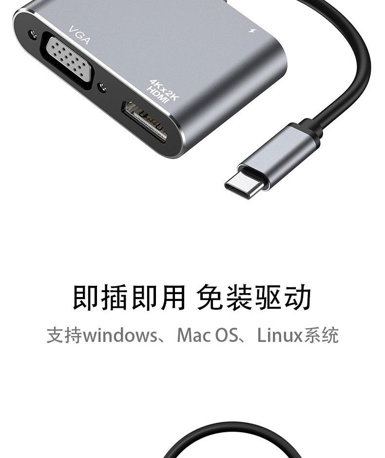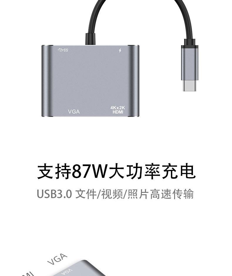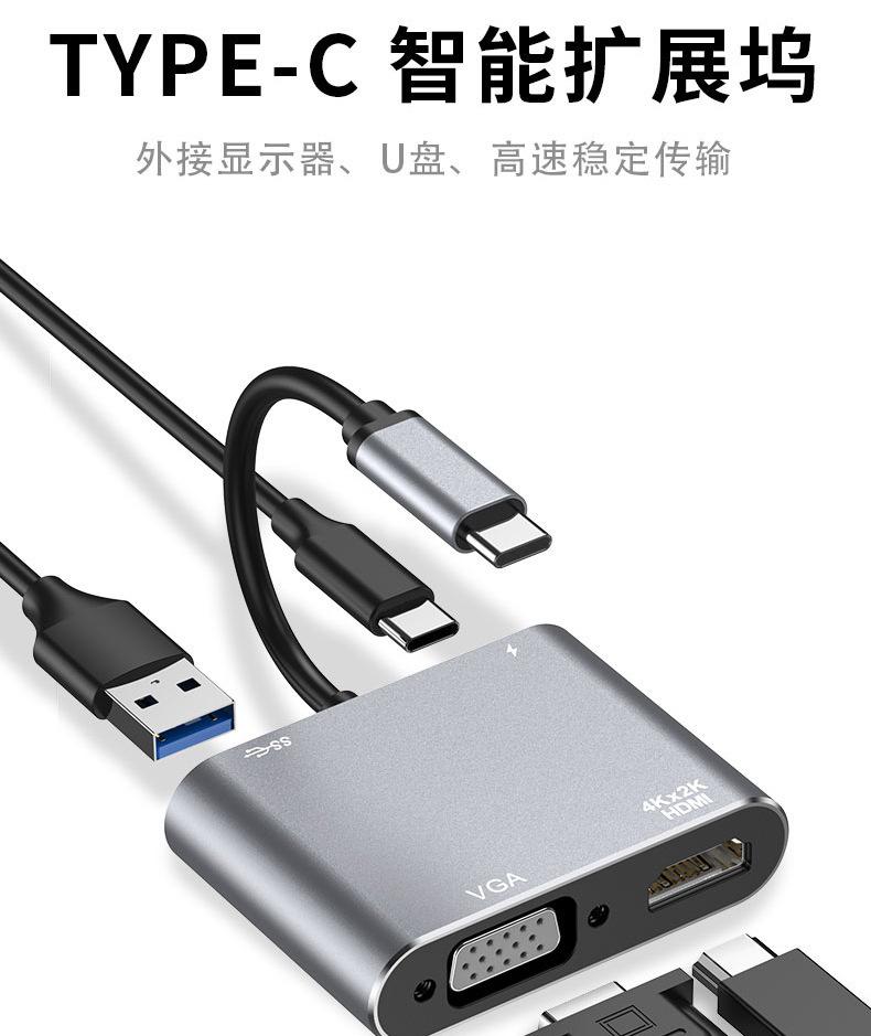 Cable Adaptador de Computadora 4 en 1 Tipo C a HDMI Vga Hub de Conversión Estación de Acoplamiento Multi-Interfaz