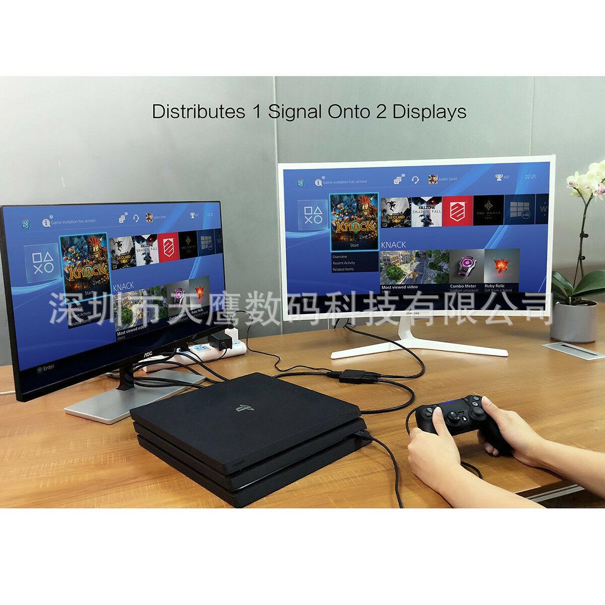 El divisor HDMI es un divisor de audio y video de alta definición que permite distribuir un puerto HDMI a dos puertos HDMI. Distribuye las señales HDMI de decodificadores, reproductores de DVD, reproductores D-VHS y otros equipos de HDTV en dos salidas de señal HDMI consistentes y sincronizadas. Los usuarios pueden emitir y conectar señales a proyectores de alta definición, DLP, televisores LCD de alta definición y otros dispositivos de influencia simultáneamente.