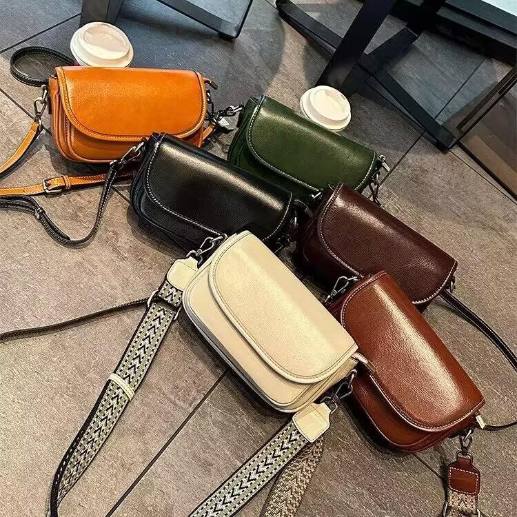 Primavera y Verano Nuevo Bolso Bolso Cruzado para Mujer Cuero Genuino Bolso Cuadrado Pequeño Bolso de Hombro de Cuero Vacuno Bolso Pequeño de Moda Vintage Outlet de Fábrica