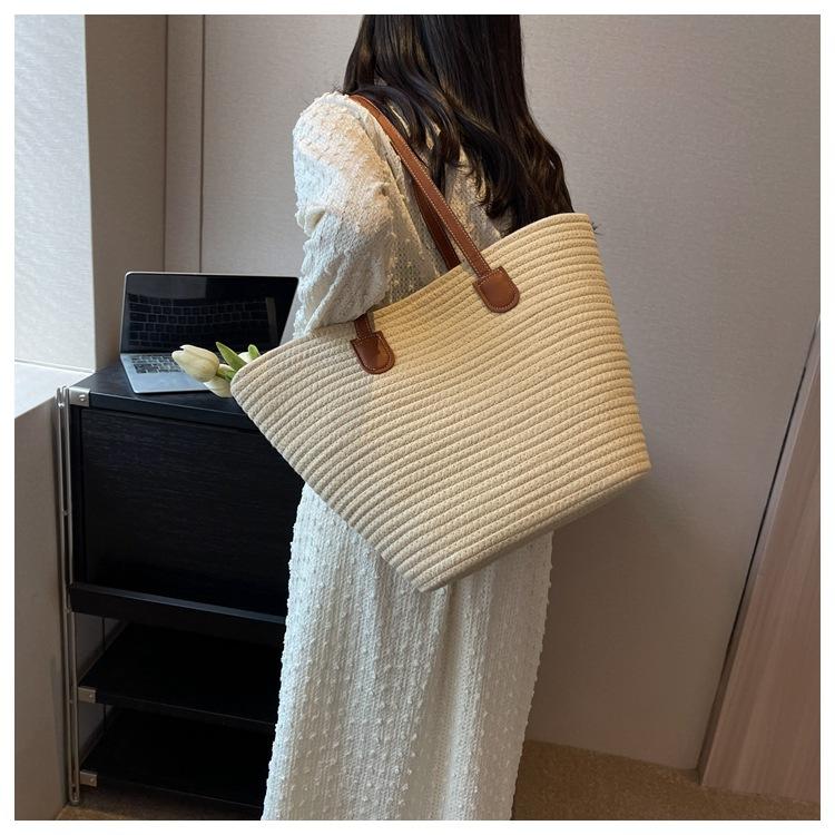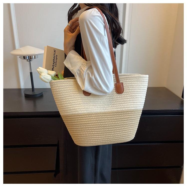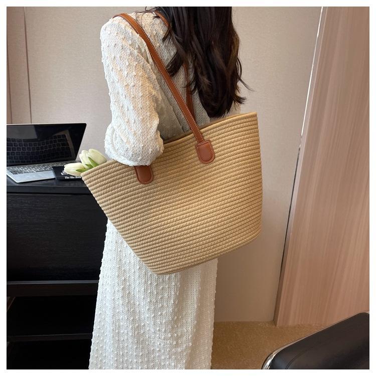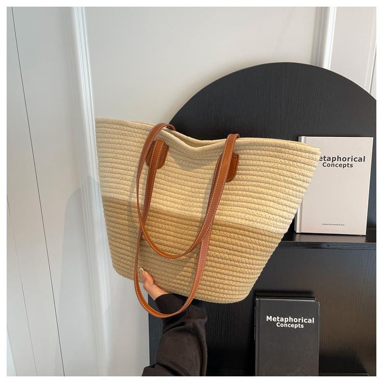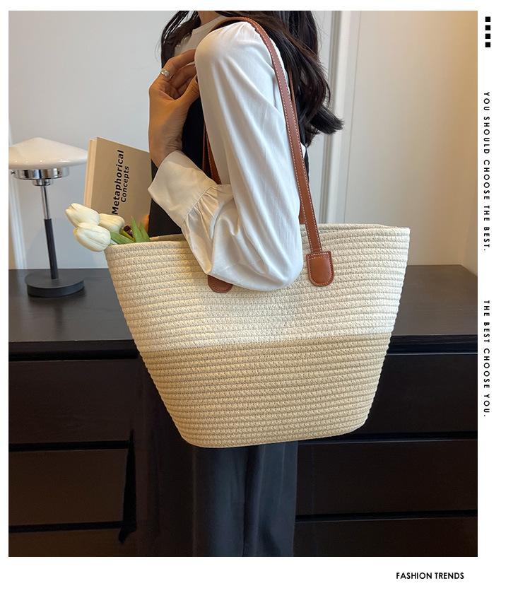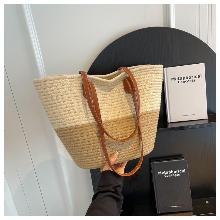 Bolso de lona para mujer, gran capacidad, 2024, nueva textura, color contrastante, bolso bandolera de verano, bolso de mano popular para ir al trabajo