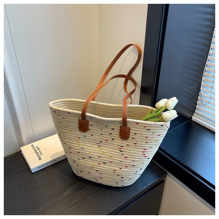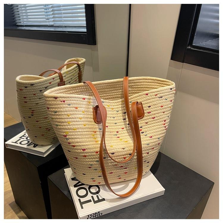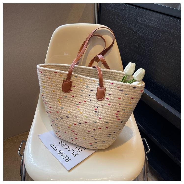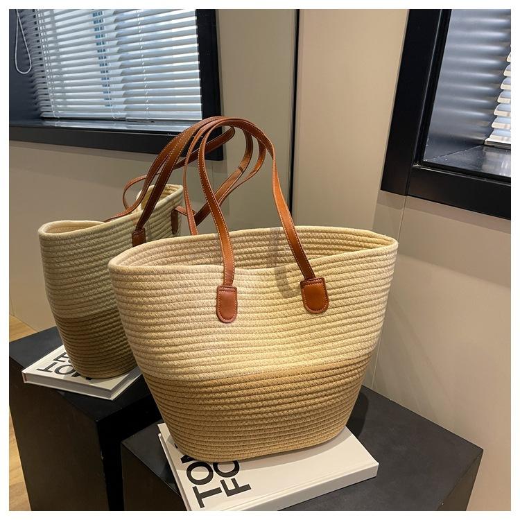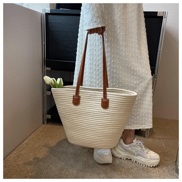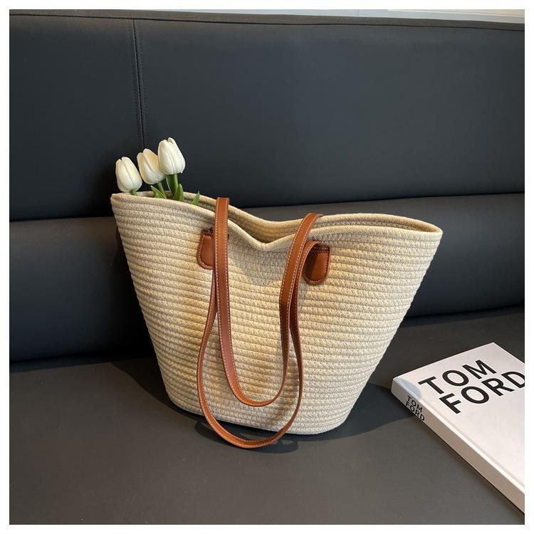 Bolso de lona para mujer, gran capacidad, 2024, nueva textura, color contrastante, bolso bandolera de verano, bolso de mano popular para ir al trabajo