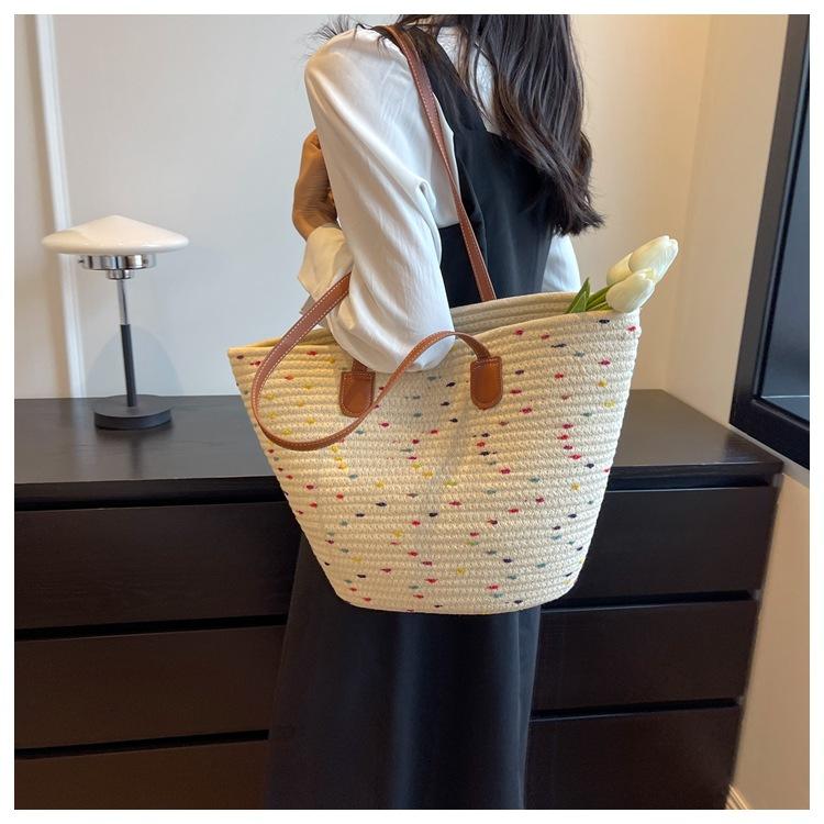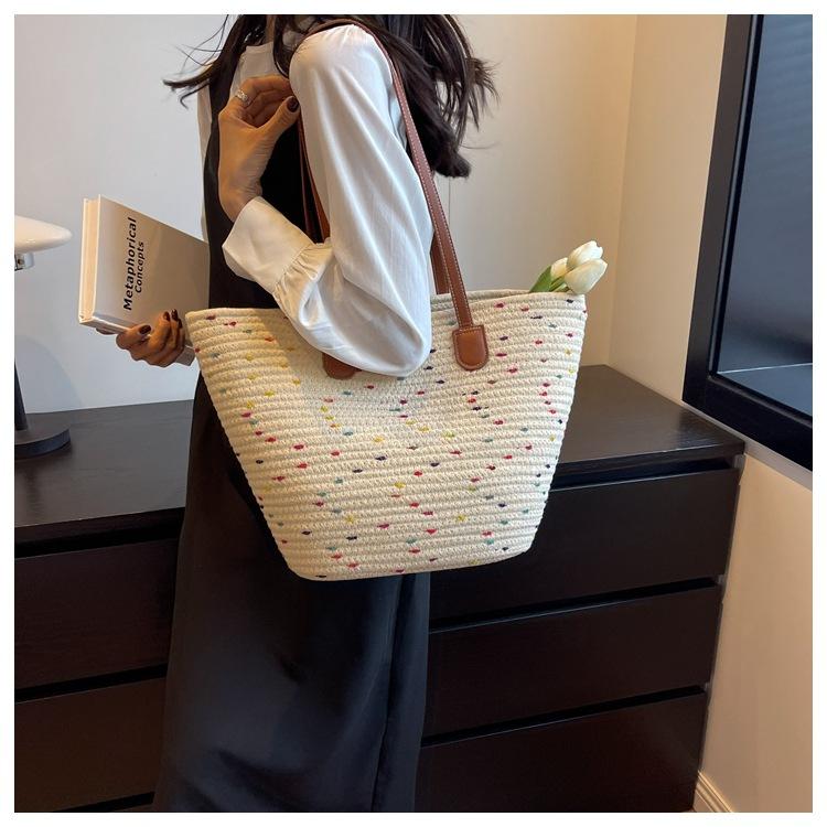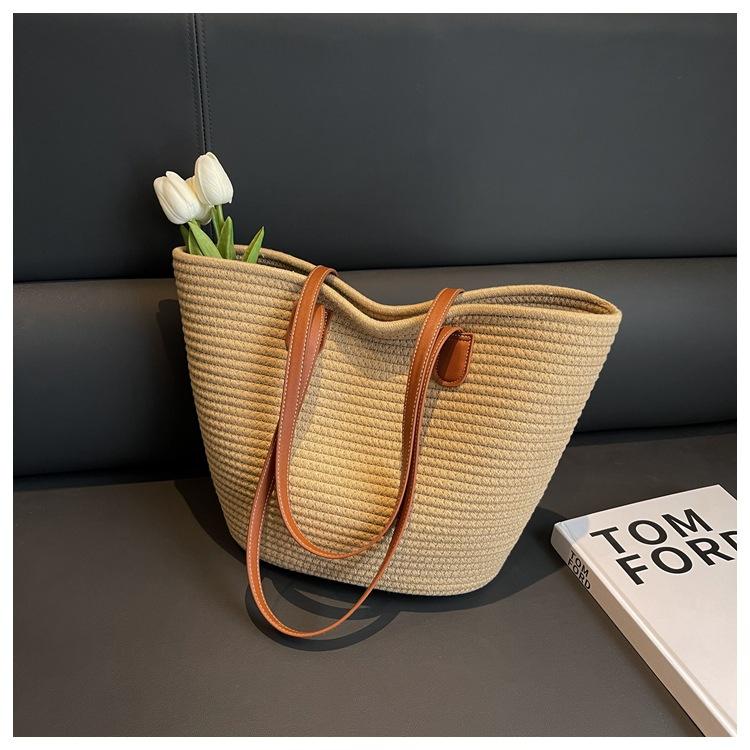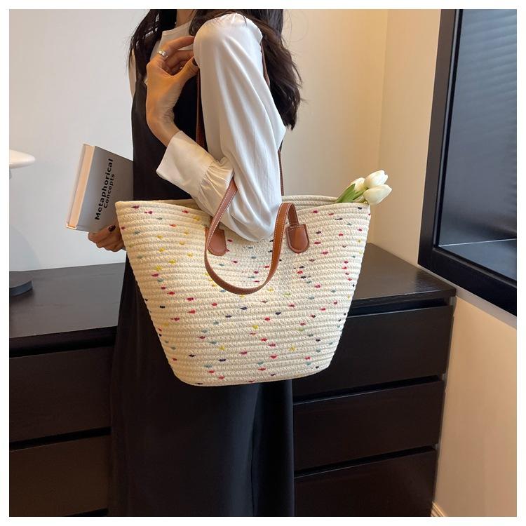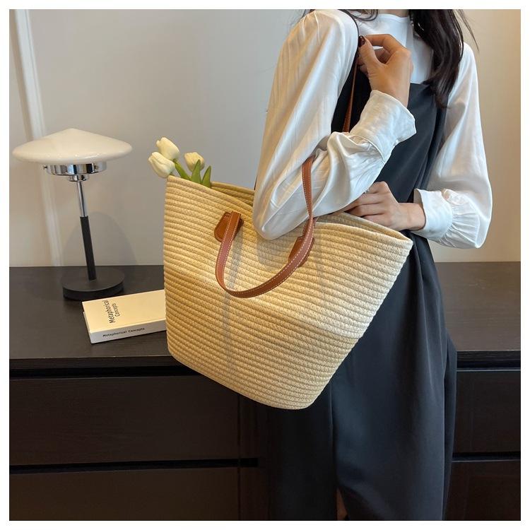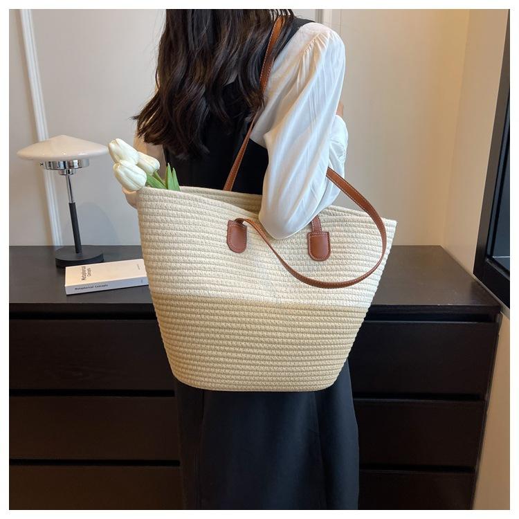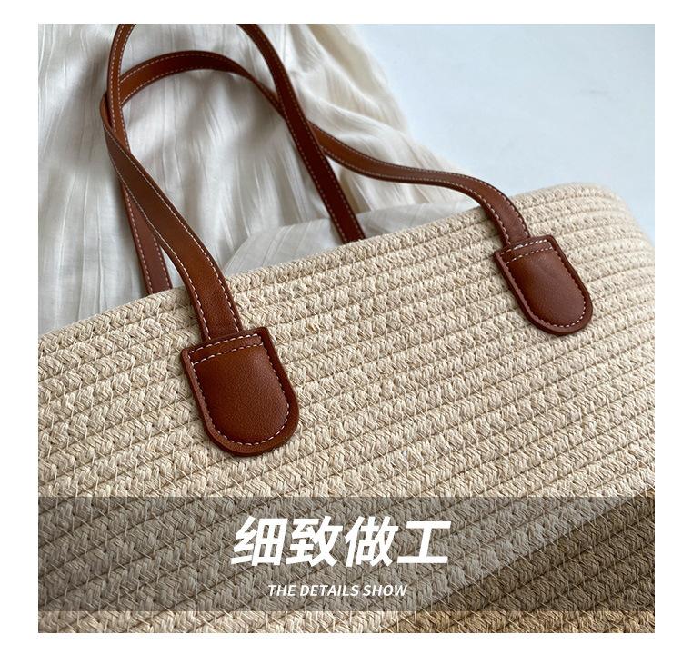 Bolso de Paja Tejida para Mujer de Gran Capacidad 2025 Nuevo Verano Combinable Bolso de Hombro Textura de Alta Calidad Bolso Tote para Ir al Trabajo