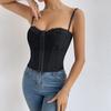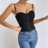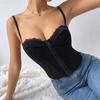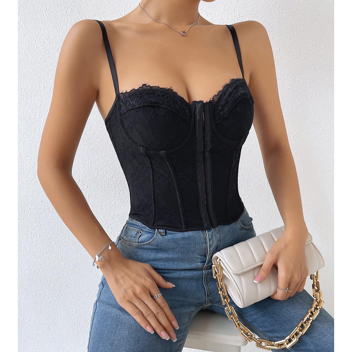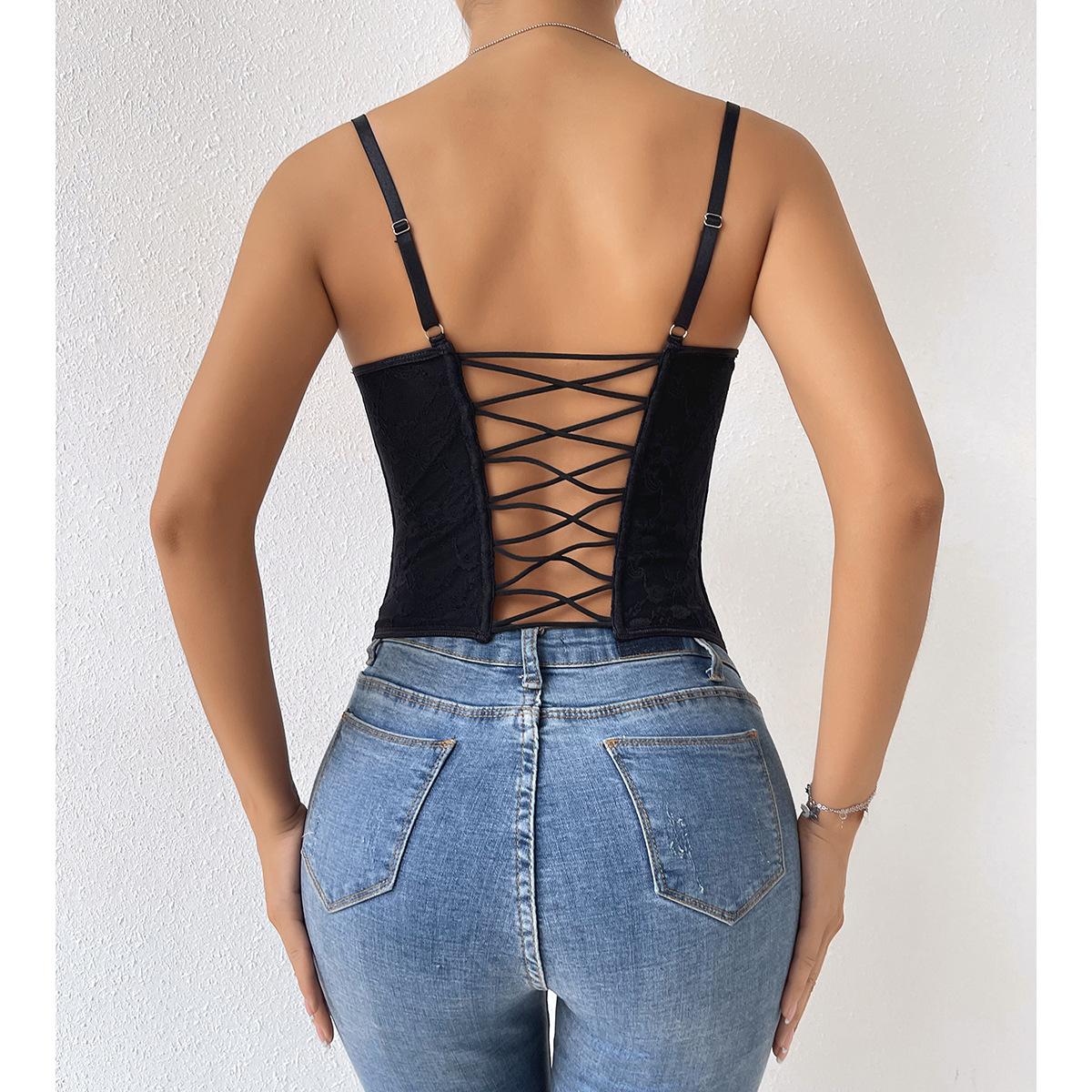 Camisola de Encaje Ajustada sin Espalda de Color Sólido de Moda de Marca Independiente de Amazon para Mujer Ropa Casual Versátil