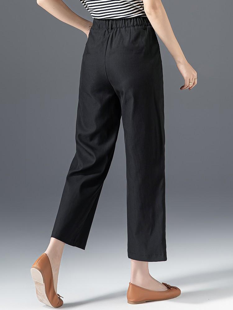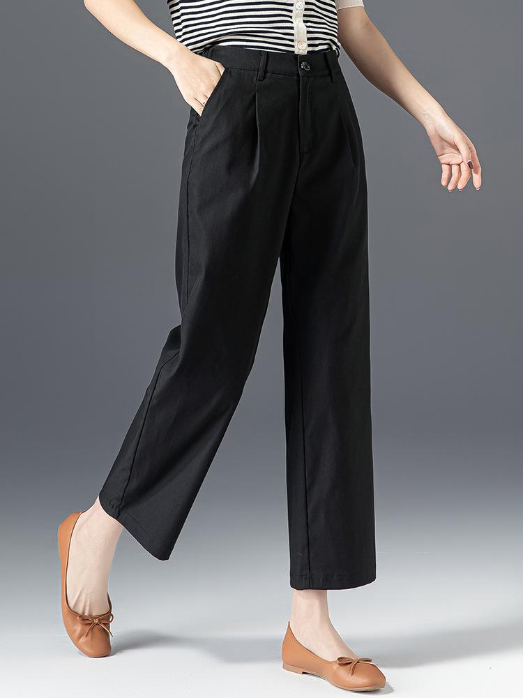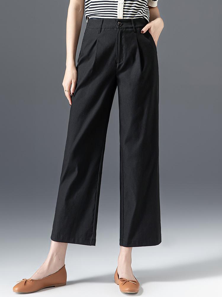 Pantalones negros estrechos y rectos para mujer, pantalones pequeños, primavera y verano 2024, pantalones de mujer de seda fina de hielo, pantalones casuales recortados de pierna ancha