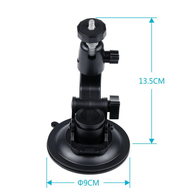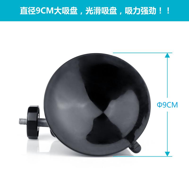 La ventosa inferior es de goma blanda negra con un diámetro de 9 cm. La prueba real muestra que se puede adsorber establemente en la superficie de los objetos cuando se usa como una cámara de salpicadero GoPro para fijarla en ventanas de automóviles, motocicletas y vidrio.