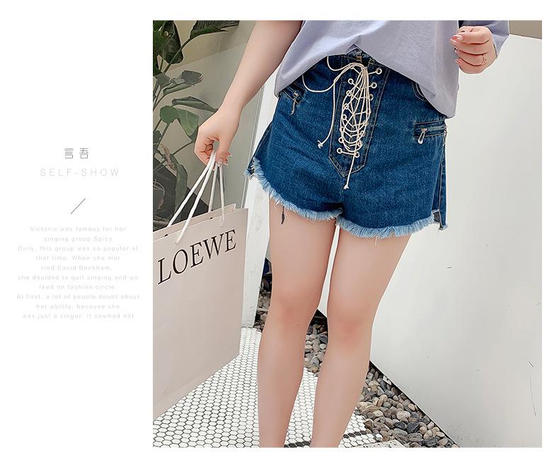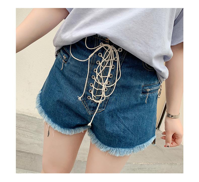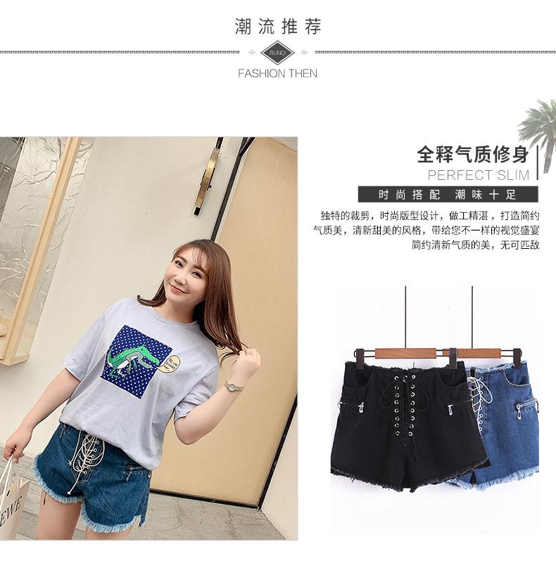 Shorts de Mezclilla para Mujer Verano Nuevo Moda Talla Grande para Mujer Tirante con Cremallera Deshilachada Shorts de Mezclilla N6939