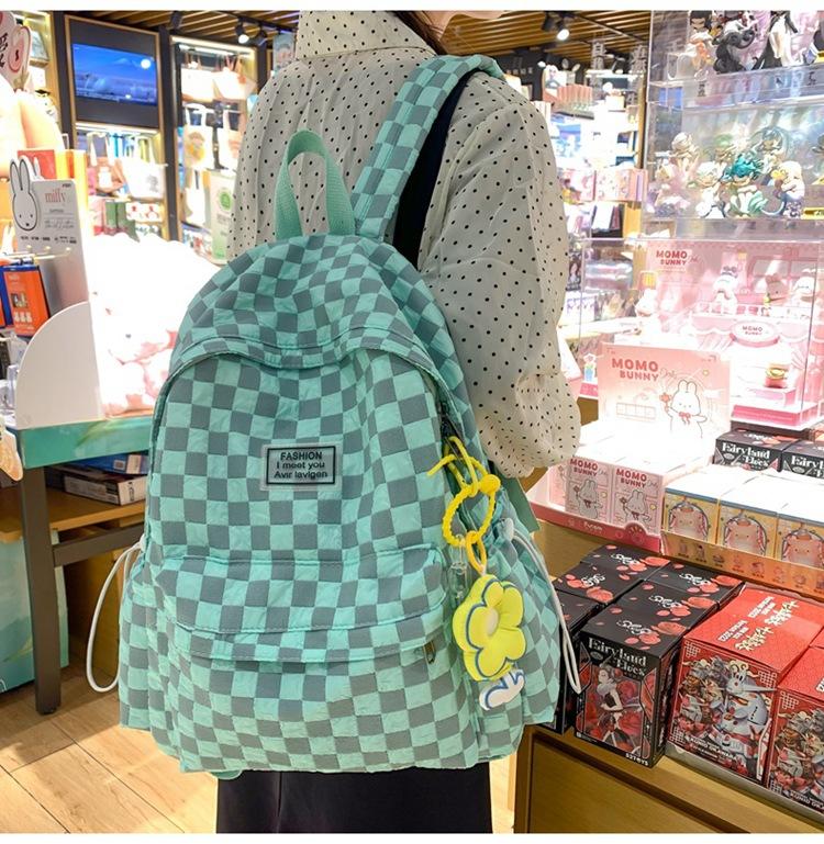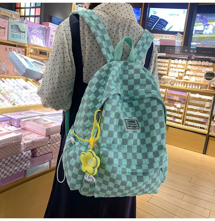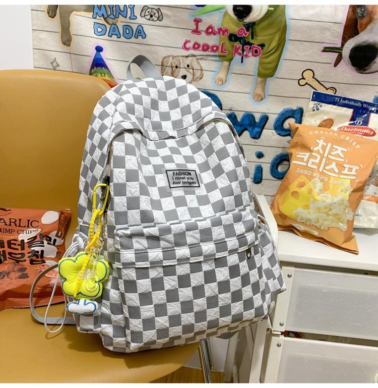 Mochila escolar femenina para estudiantes de secundaria, estilo coreano, a cuadros, de gran capacidad, para ordenador de viaje