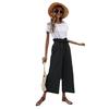 Pantalones de Verano para Mujer 2023 Estilo Europeo y Americano Cintura Elástica Color Sólido Algodón Lino con Cinturón Pierna Ancha Pantalones Sueltos Capri Cintura Alta Adelgazantes