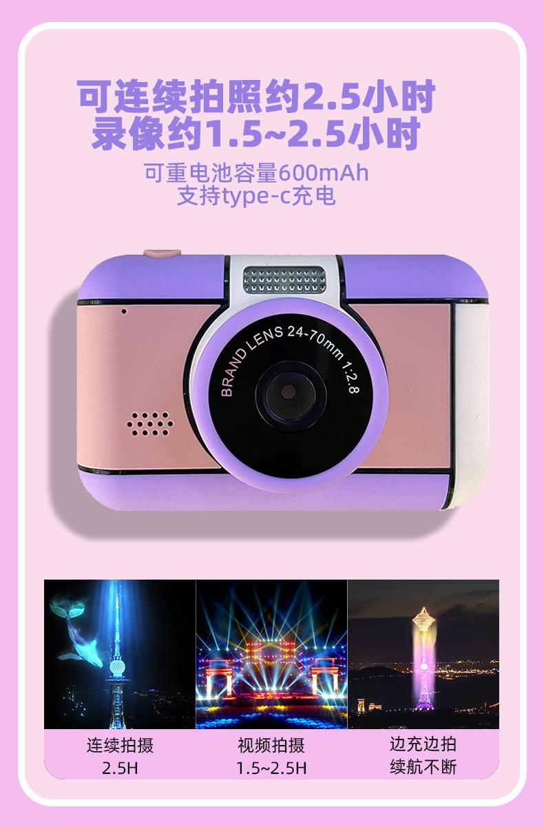 Cámara para Niños Morada Alta Definición 2.4 Pulgadas 9600W Pixeles Cámara Digital de Doble Cámara Transfronteriza Doble Lente