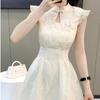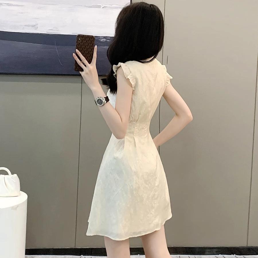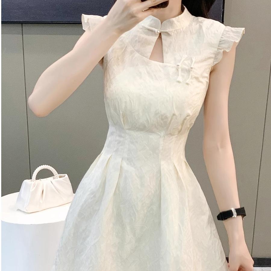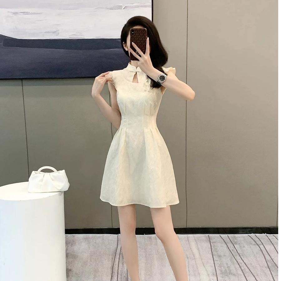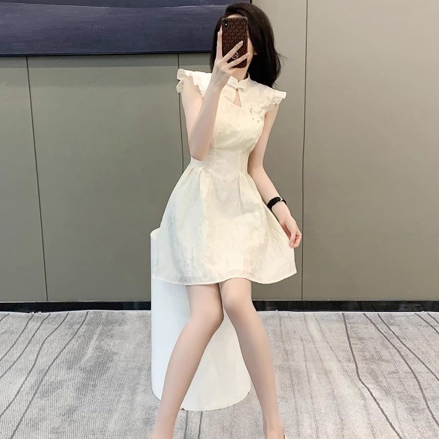 Compra Nuevo Vestido Estilo Chino Puro y Adelgazante para Mujer con Diseño Único, Mangas Cortas con Volantes, Ceñido a la Cintura, Vestido Cheongsam Mejorado con un Toque de Alta Gama al por mayor en Joom.pro