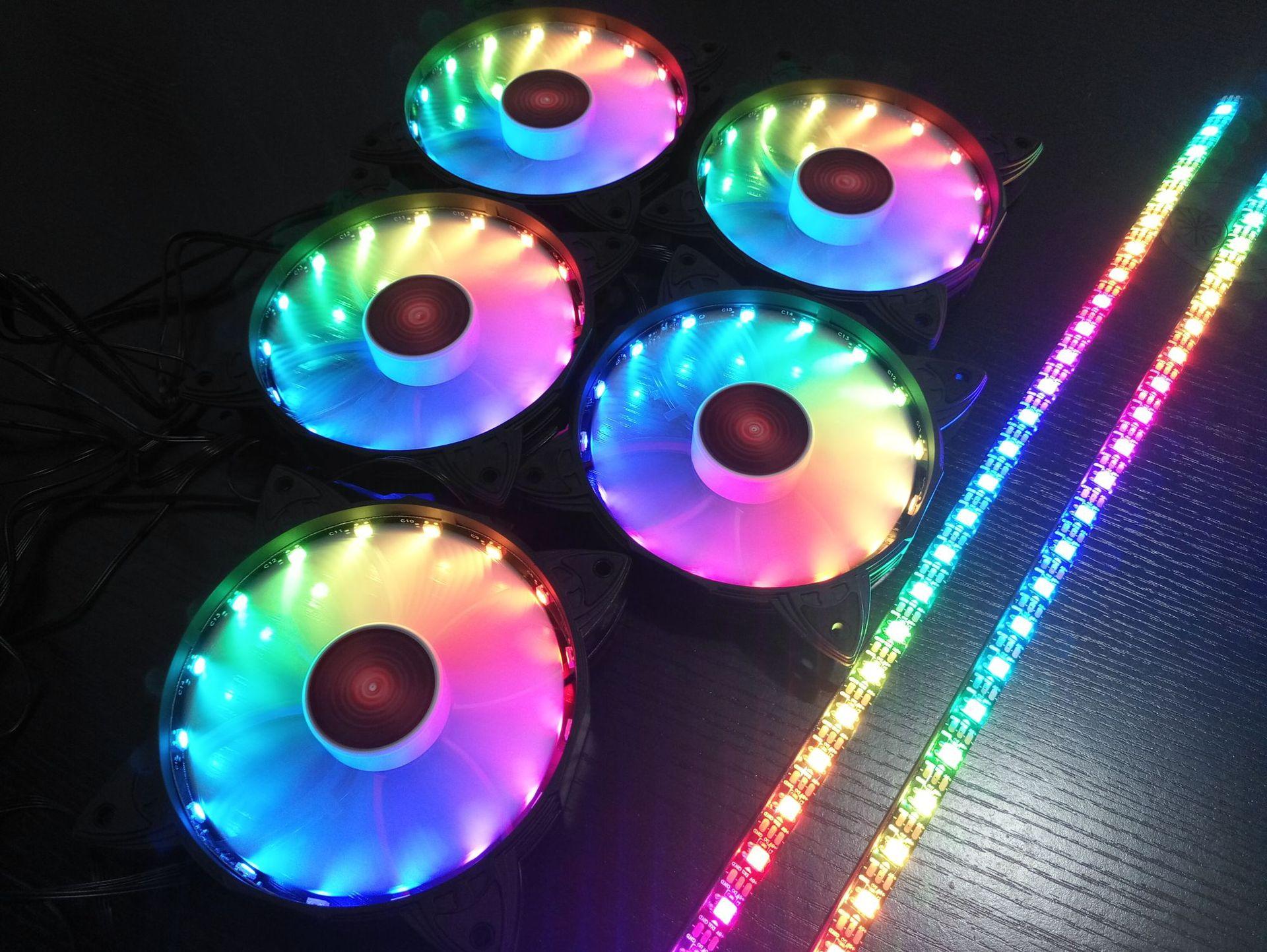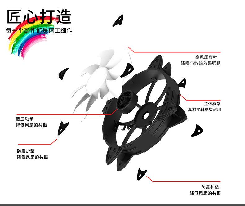 Una opción es un ventilador RGB camaleónico de colores, y la otra es un conjunto de control y control remoto, que deben pedirse juntos. Un controlador puede conectar hasta 10 ventiladores y 2 tiras de luz. Si pide una sola opción, no se enviará. El ventilador tiene múltiples modos: respiración monocromática, respiración multicolor, parpadeo rápido, parpadeo lento, marquesina, luz de respiración, se puede apagar, ajustar el brillo, la velocidad de rotación del ventilador y la velocidad de la luz. ¡Es colorido! Si necesita más ventiladores o compras al por mayor, comuníquese con el servicio de atención al cliente en línea.Este ventilador es ideal para cajas de juegos transparentes de alta gama, ¡lo que las hace más coloridas! A continuación se muestra el efecto de usar la caja.