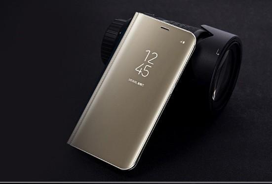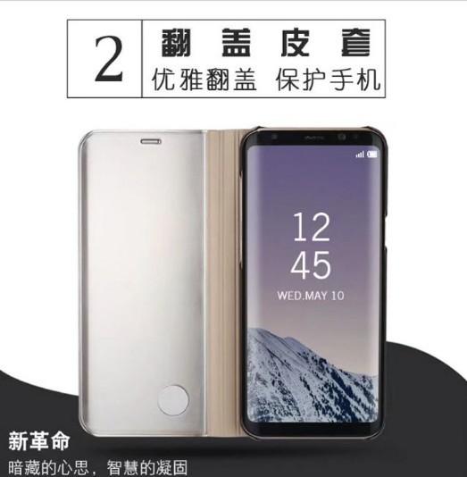 Adecuado para Samsung S25Ultra Estuche de Cuero con Tapa Espejo con Soporte Estéreo Electrochapado S24Plus Funda para Teléfono Móvil S23Fe