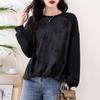 Camiseta de manga larga de primavera y verano para mujer, camisa básica de cuello redondo de algodón flameado, versión holgada, top dividido de talla grande para mujer 1838-1