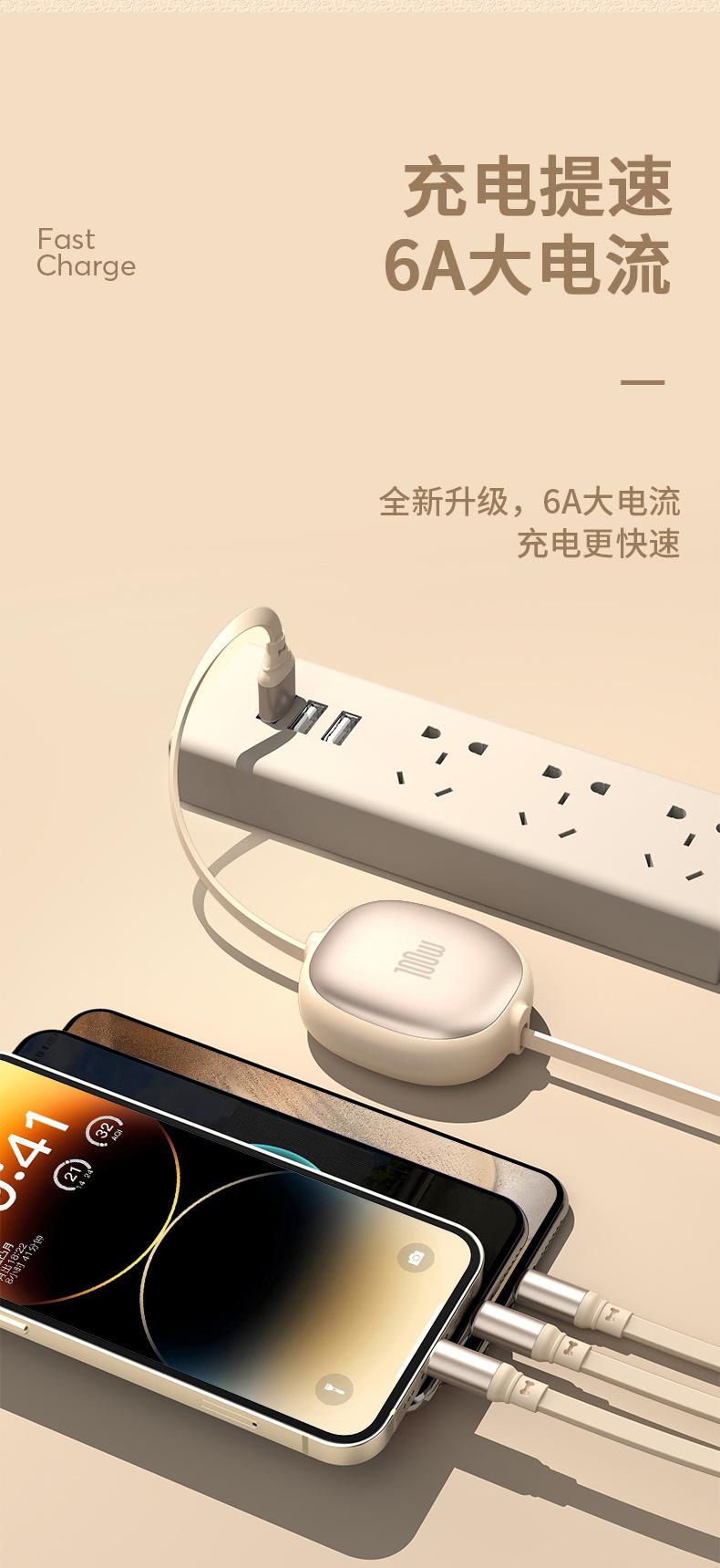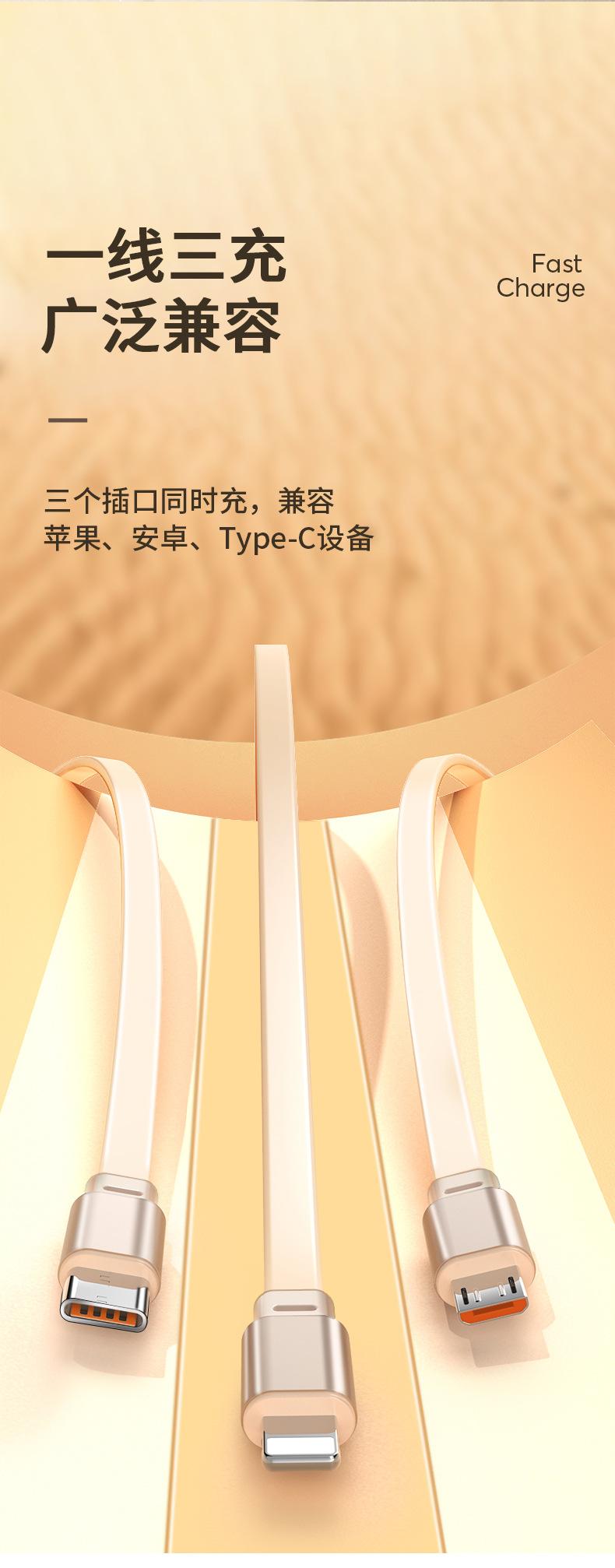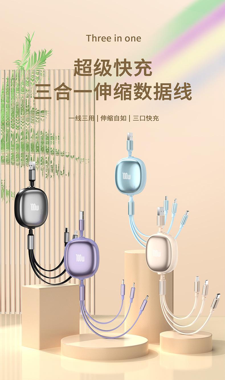Cable de datos tres en uno de carga rápida telescópico al por mayor 6a cable de carga uno a tres logotipo de regalo cable de datos para teléfono móvil para coche