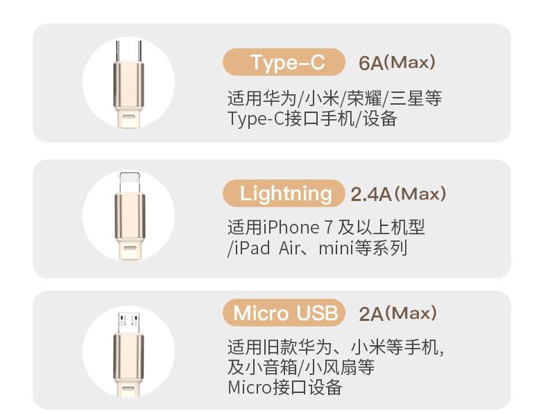 Compra Cable de datos tres en uno de carga rápida telescópico al por mayor 6a cable de carga uno a tres logotipo de regalo cable de datos para teléfono móvil para coche al por mayor en Joom.pro