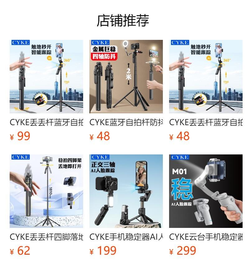 Cyke Palo Selfie Trípode de Piso Soporte para Teléfono para Transmisión en Vivo Estabilizador de Mano Anti-Vibración Portátil para Viaje