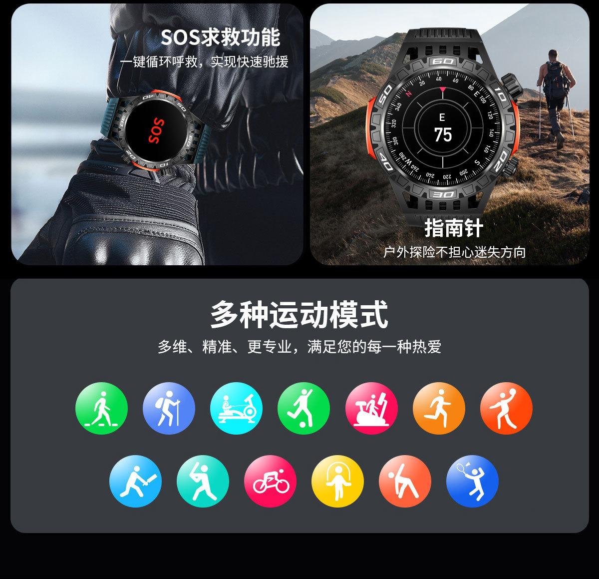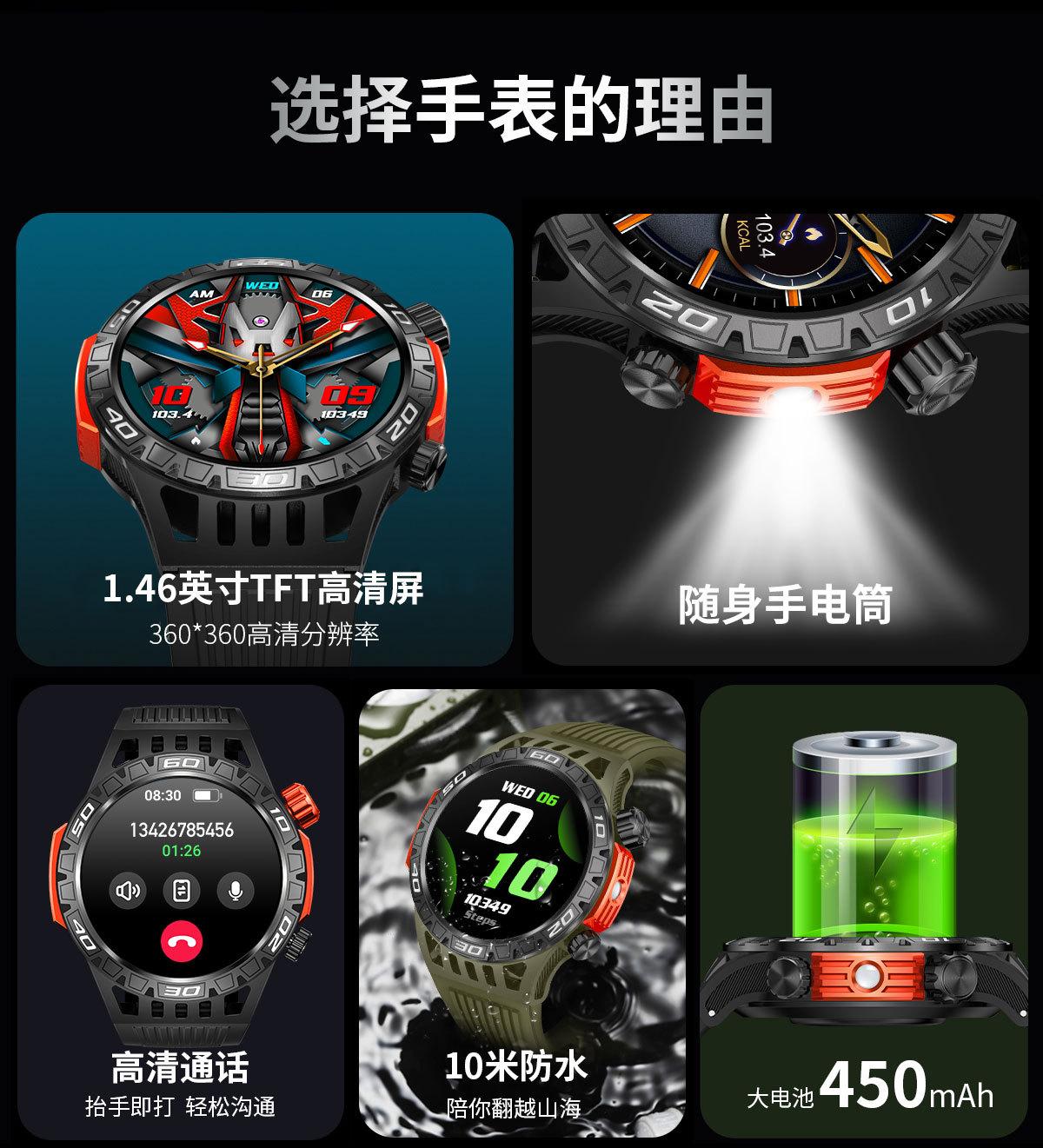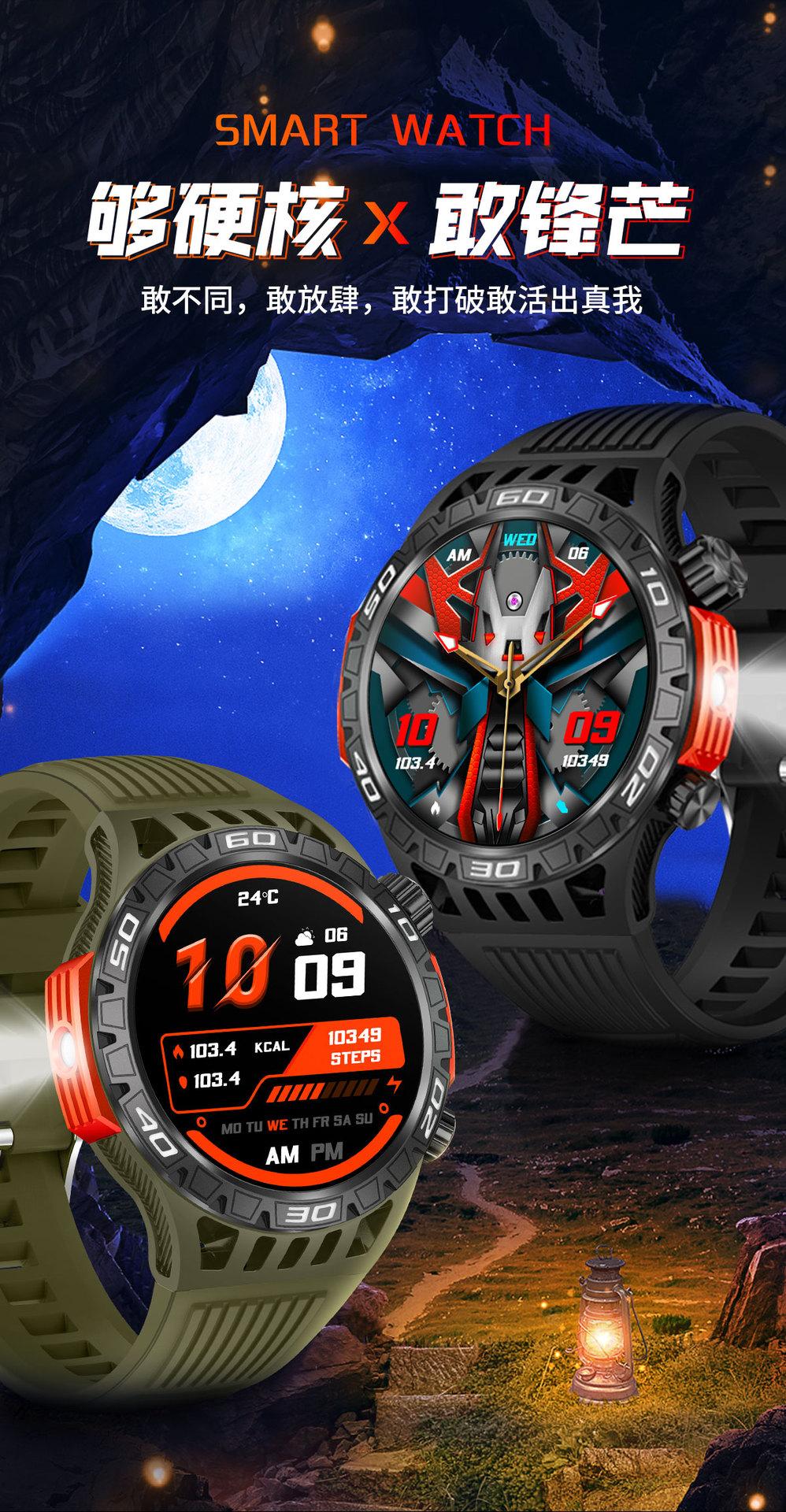 Nuevo reloj inteligente HT22 brújula linterna llamada Bluetooth luz flash deportes al aire libre reloj de salud
