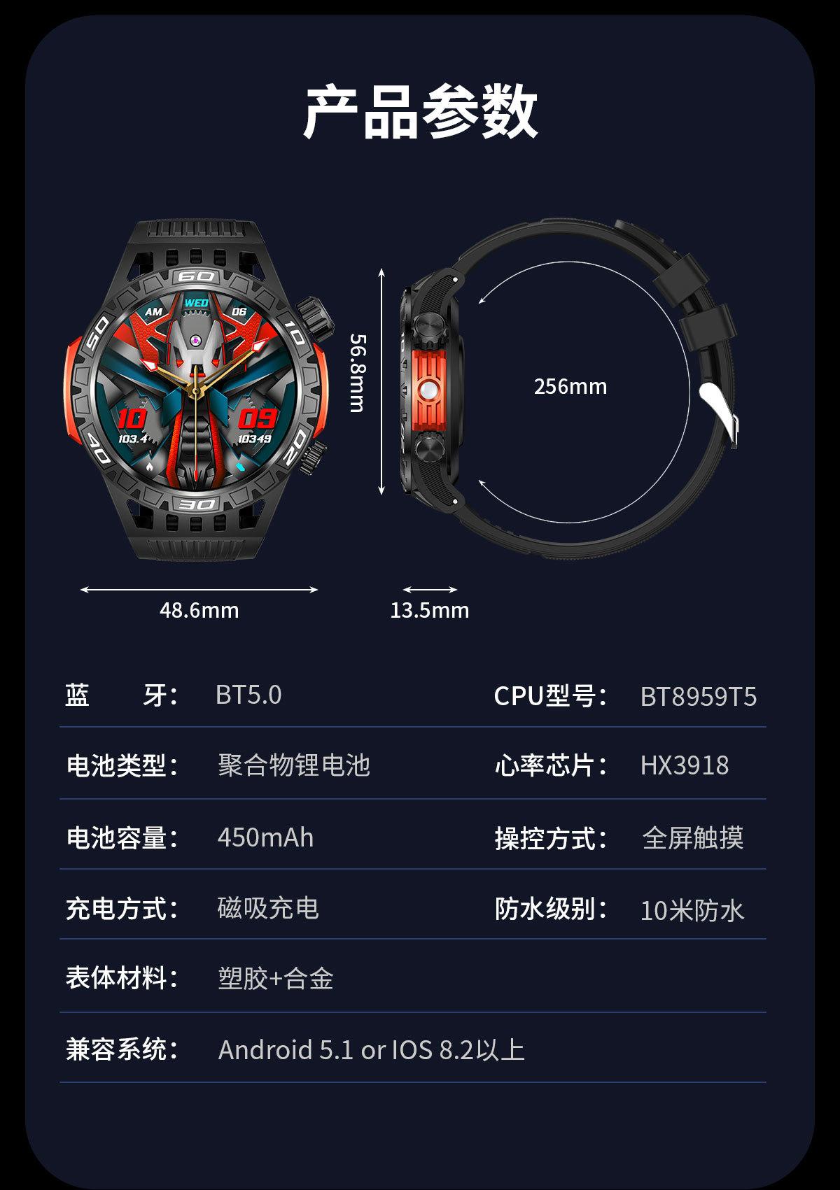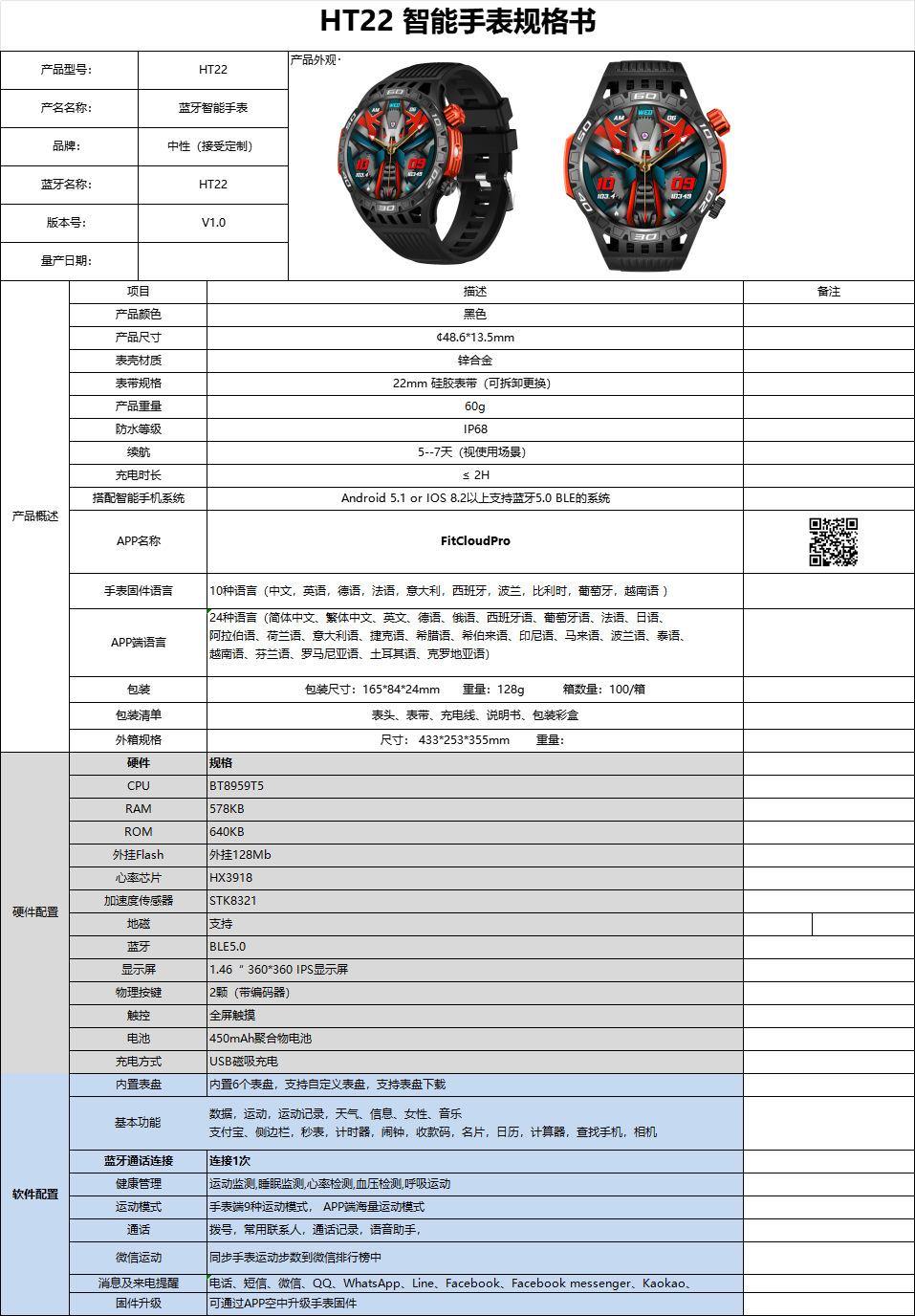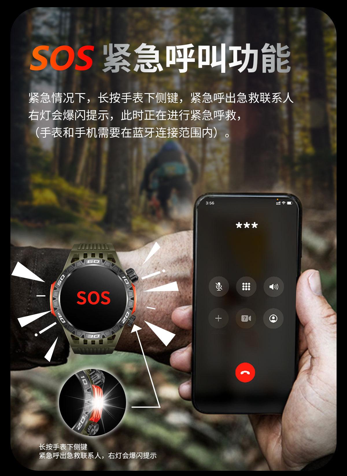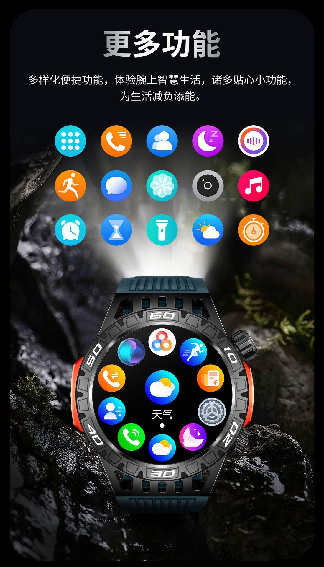 Nuevo reloj inteligente HT22 brújula linterna llamada Bluetooth luz flash deportes al aire libre reloj de salud
