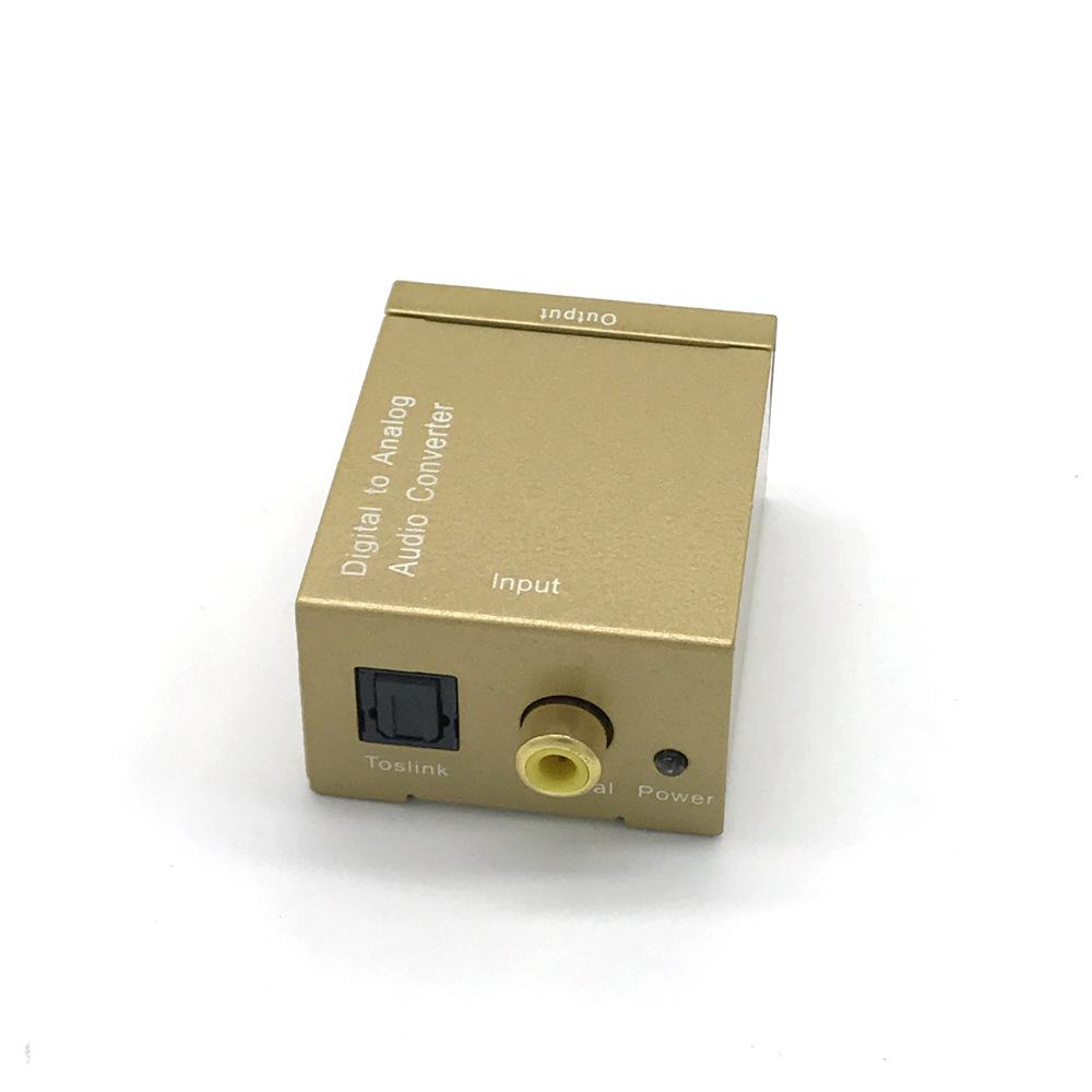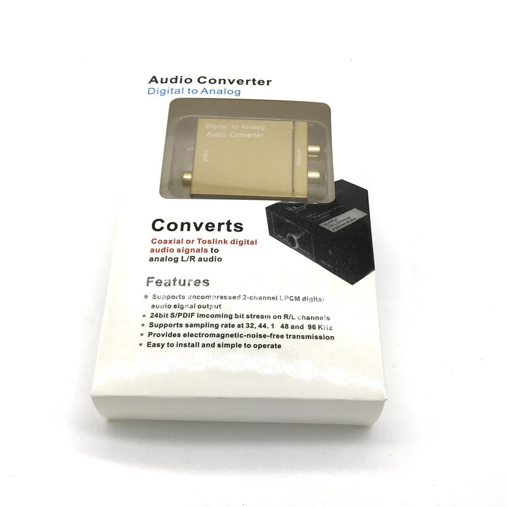 Este conversor de audio digital a analógico se puede usar para la conmutación de audio doméstico o profesional. Convierte señales de audio digital de cable coaxial o Toslink en audio analógico y se puede conectar a dispositivos periféricos como amplificadores mediante conectores RCA estándar.