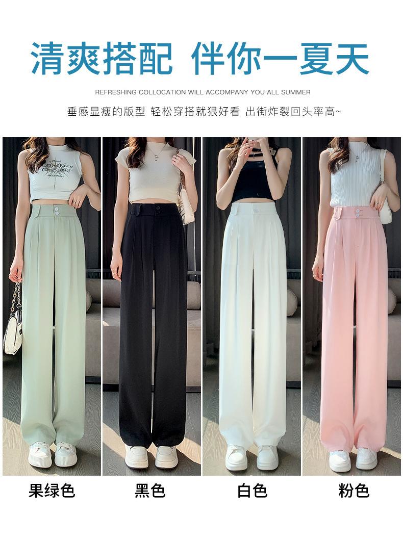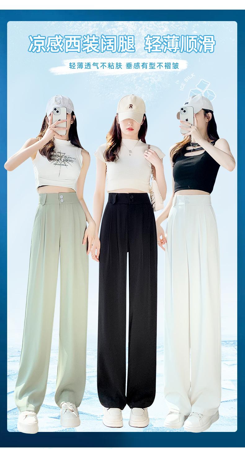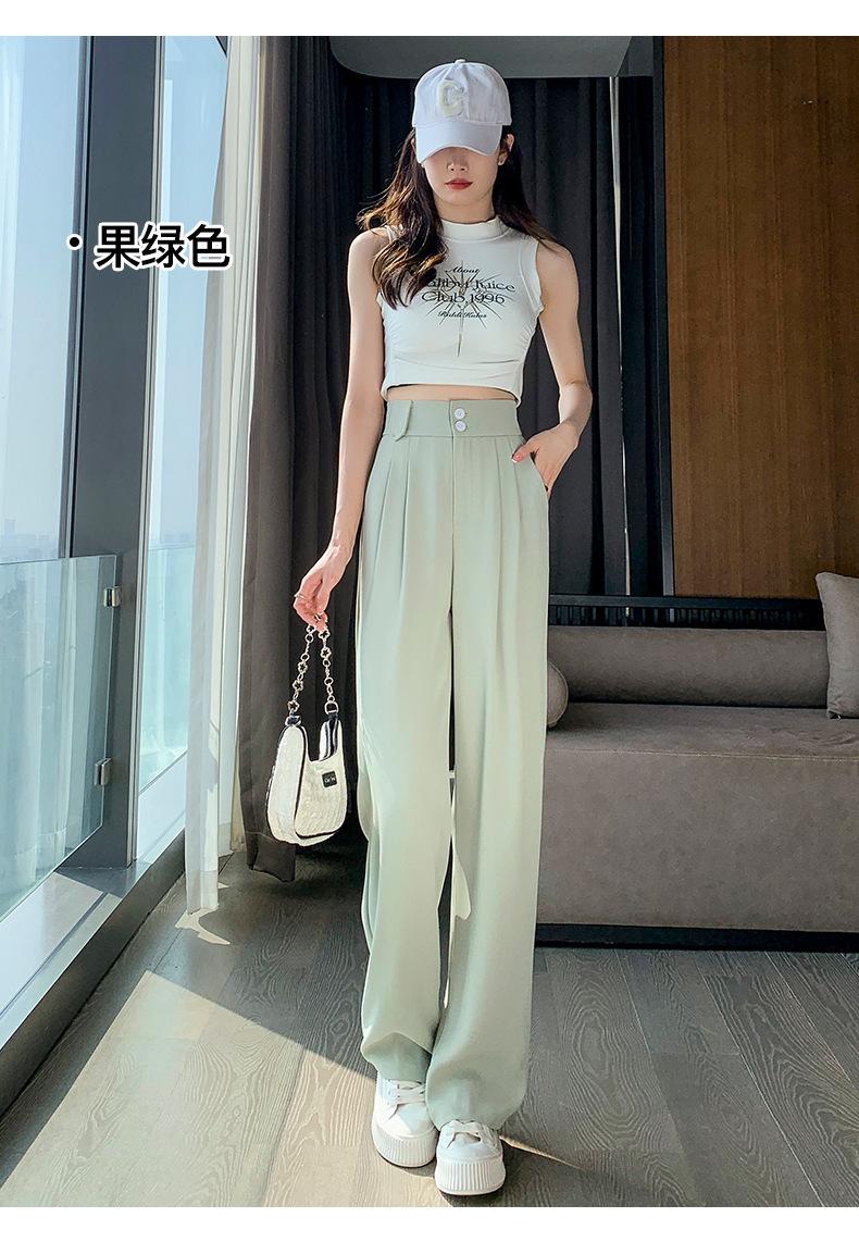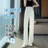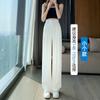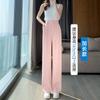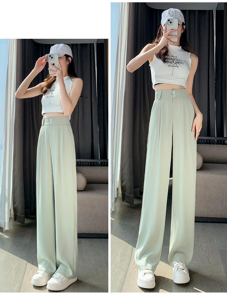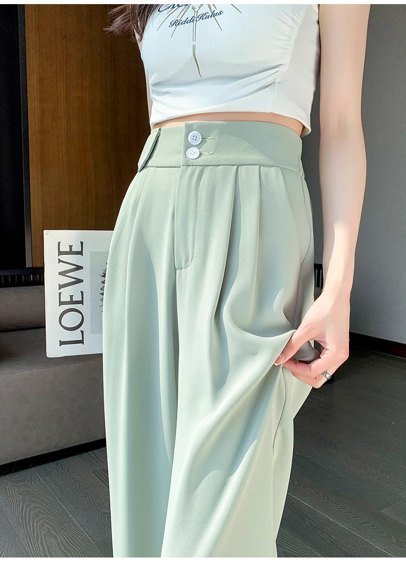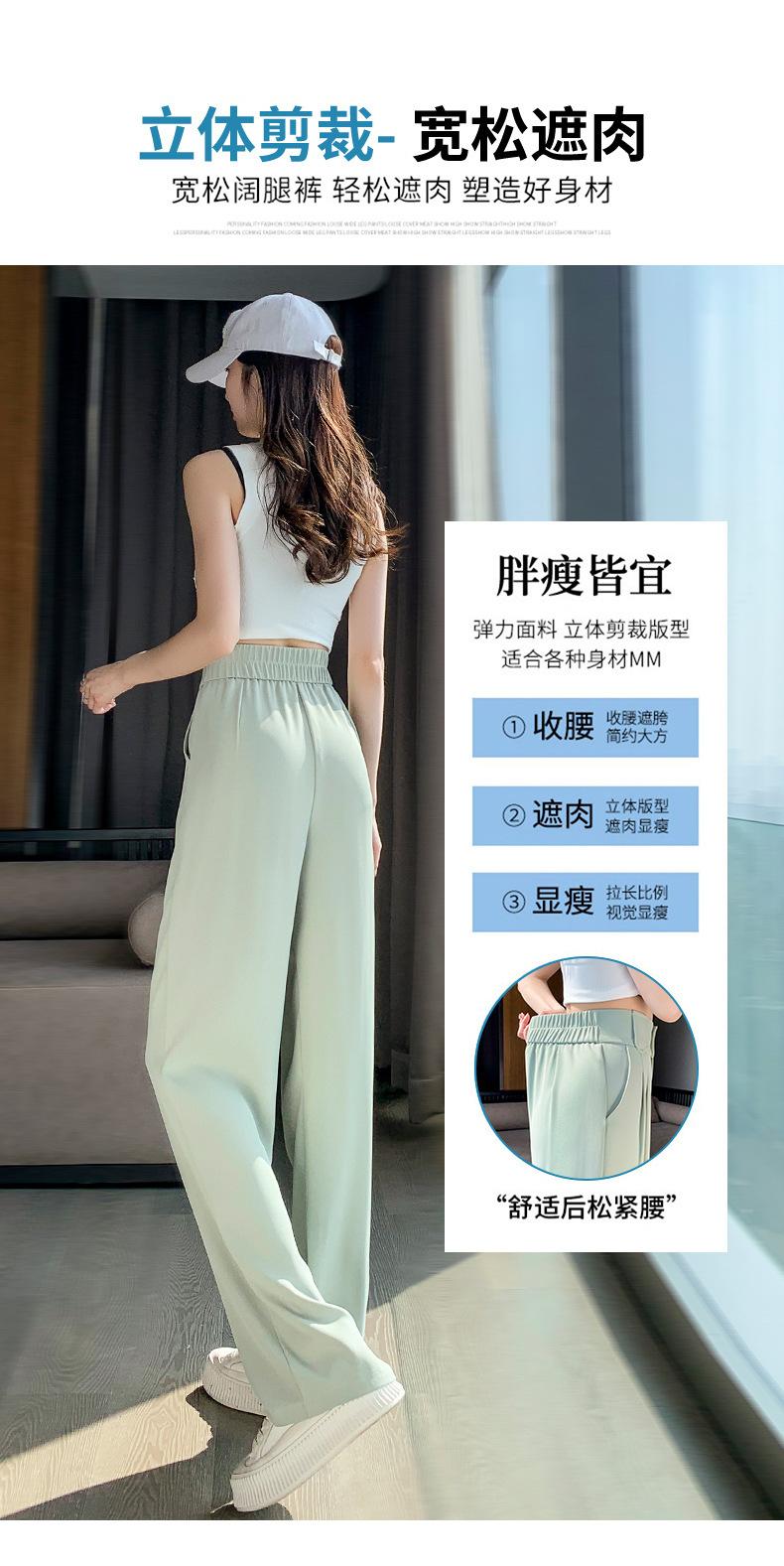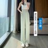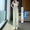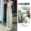 Pantalones de pierna ancha de seda de hielo verde para mujer, verano, delgados, de talle alto, con caída, de gasa, pantalones frescos, rectos estrechos, casuales, pantalones de traje