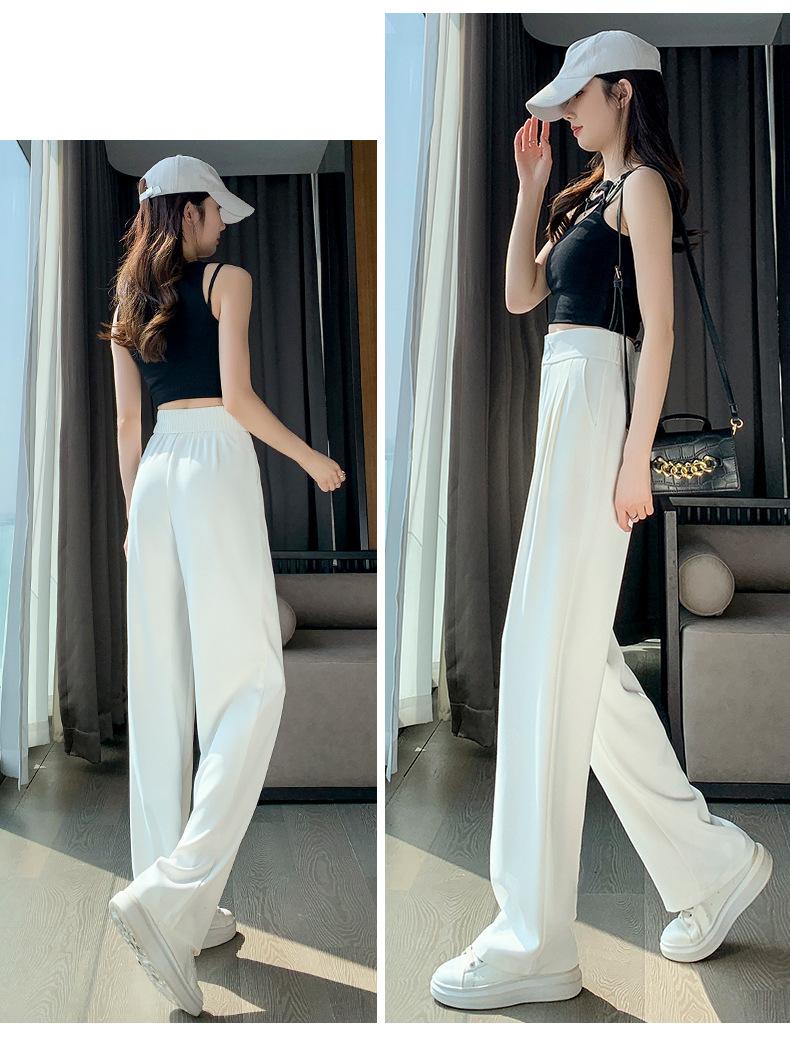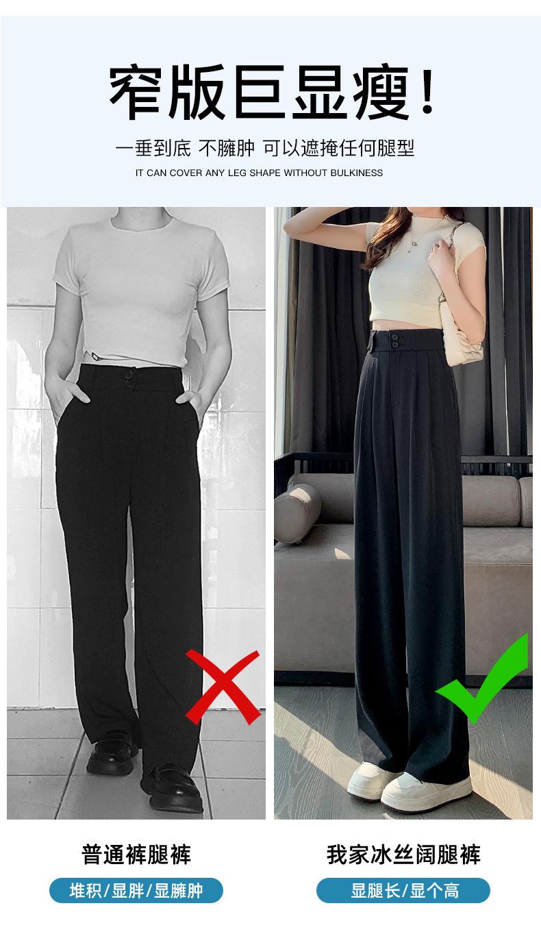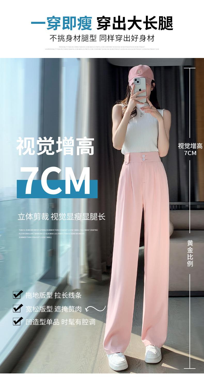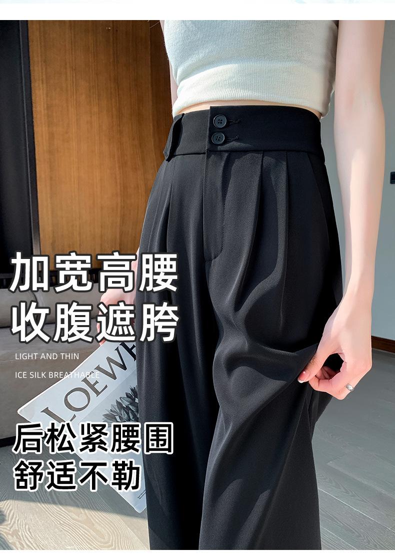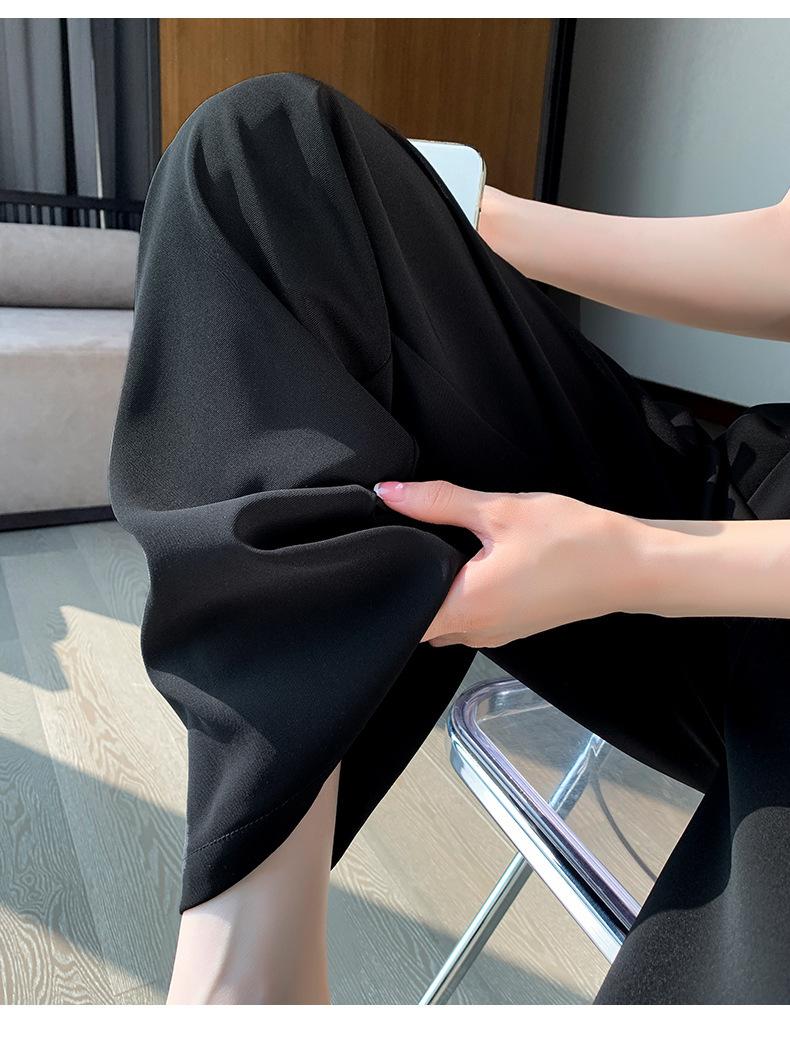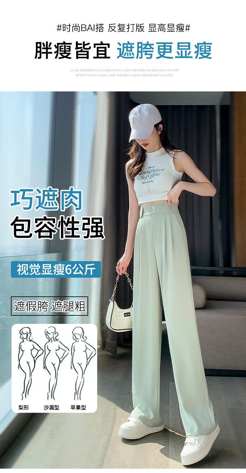 Pantalones de pierna ancha de seda de hielo verde para mujer, verano, delgados, de talle alto, con caída, de gasa, pantalones frescos, rectos estrechos, casuales, pantalones de traje