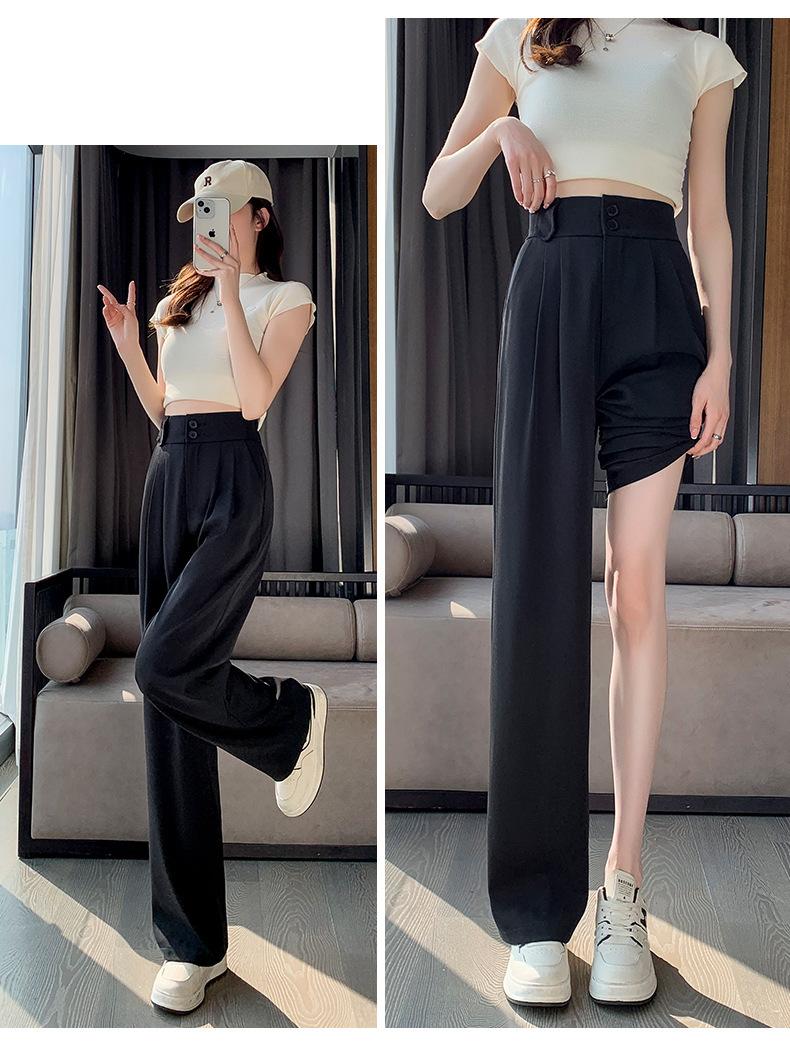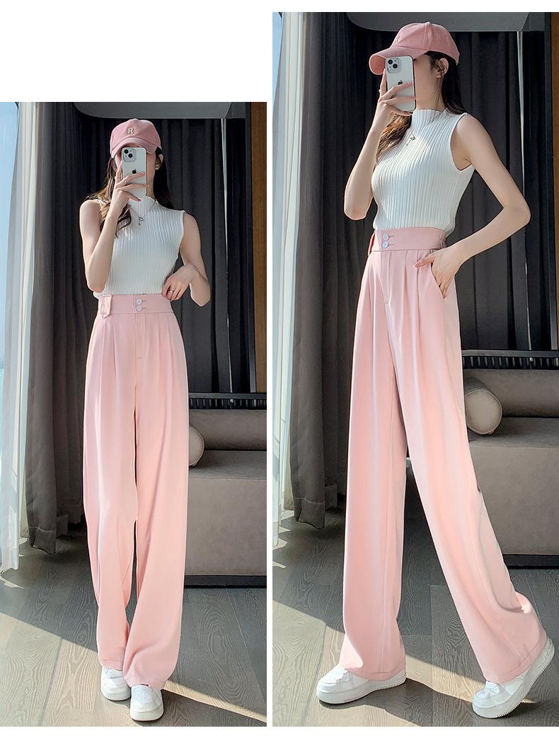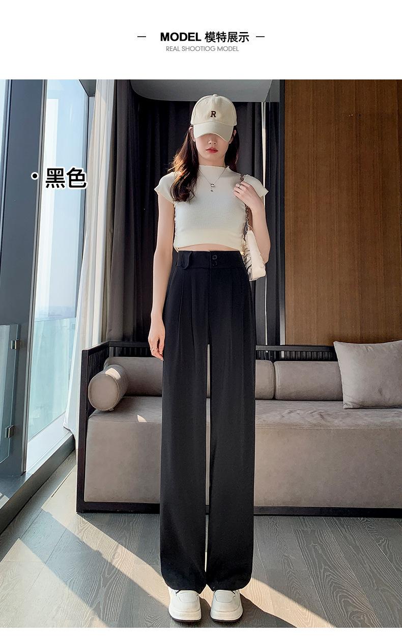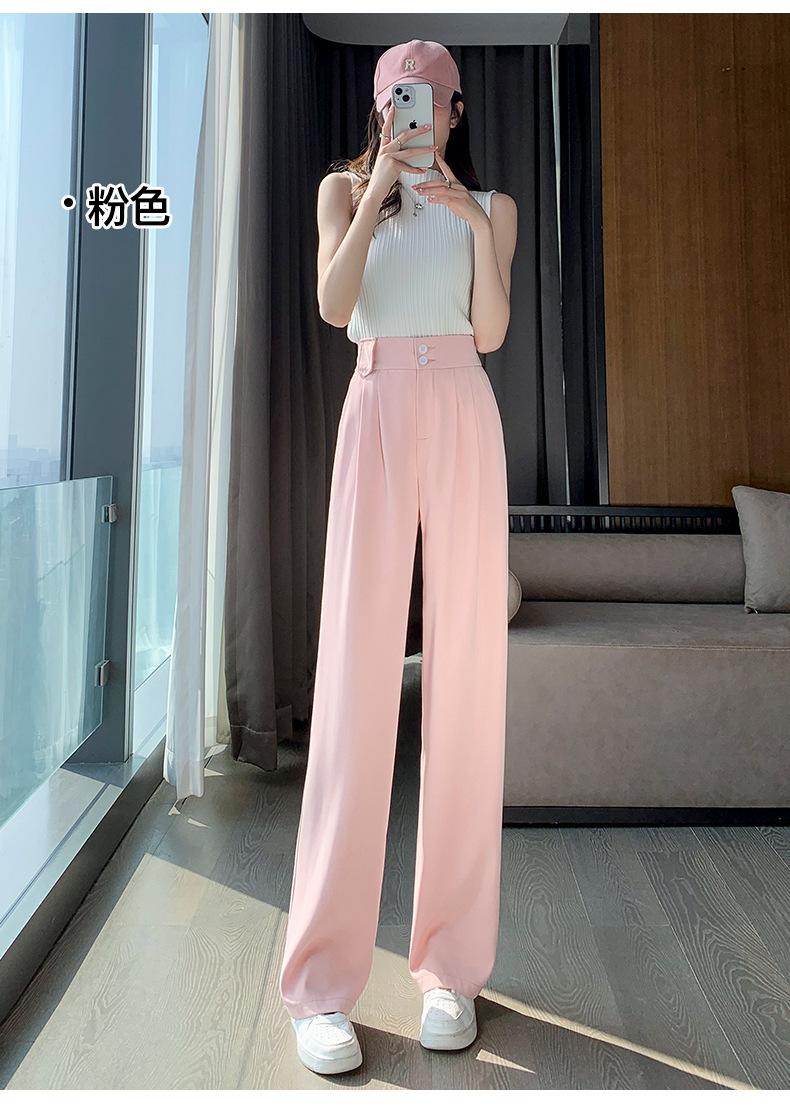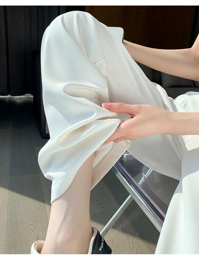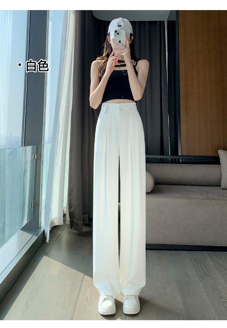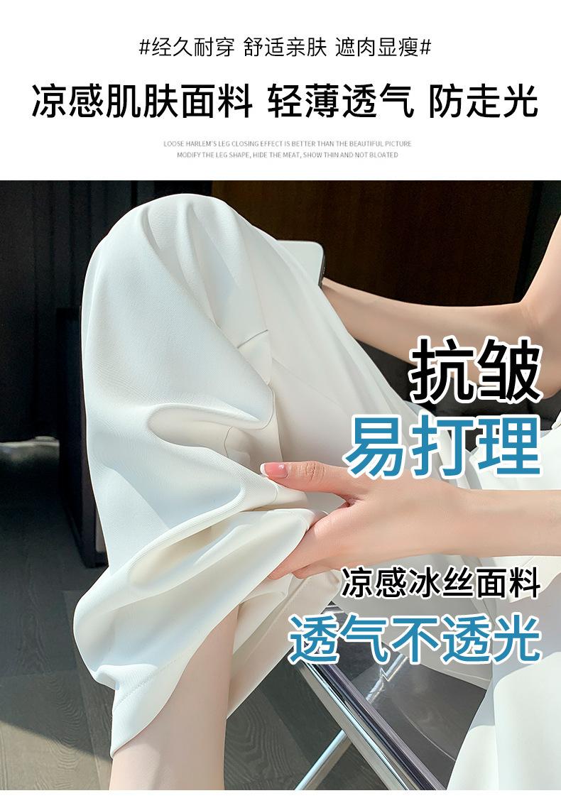 Pantalones de pierna ancha de seda de hielo verde para mujer, verano, delgados, de talle alto, con caída, de gasa, pantalones frescos, rectos estrechos, casuales, pantalones de traje