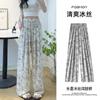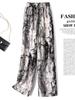 Pantalones anchos de seda verde hielo para mujer, de verano, finos, de cintura alta, de gasa, con dosificación, pantalones casuales rectos de edición estrecha.