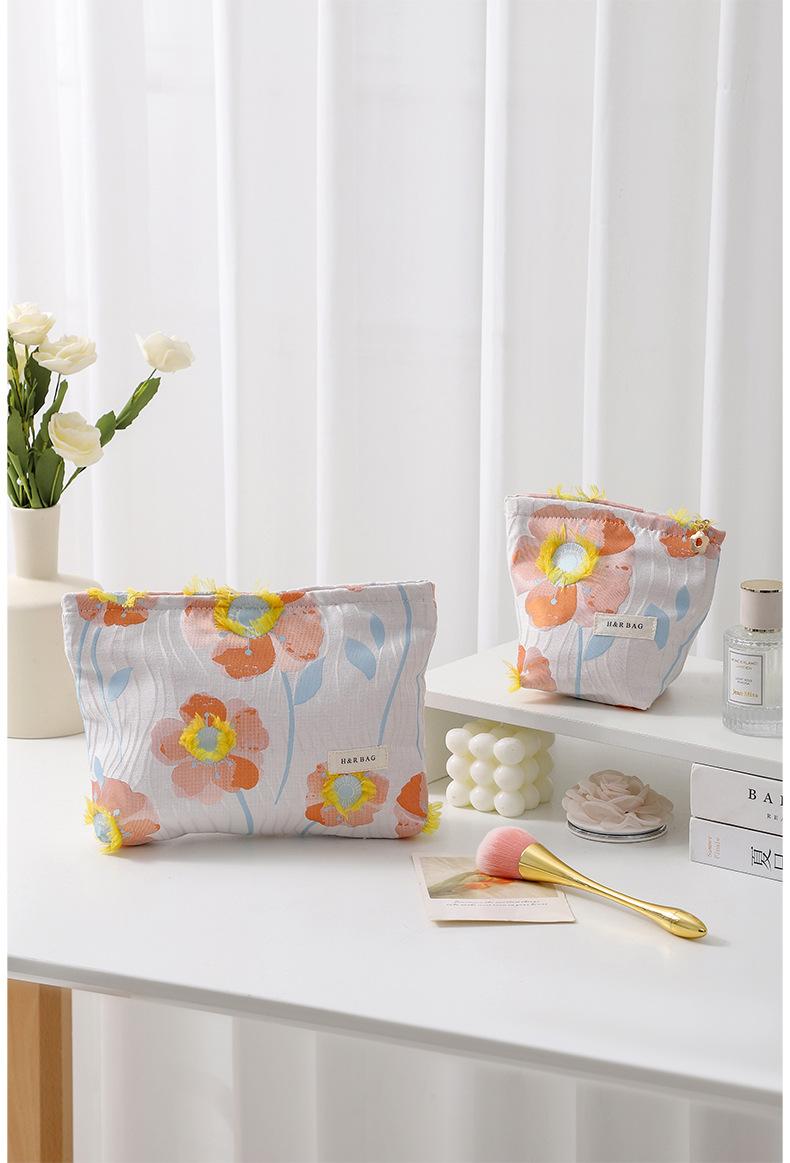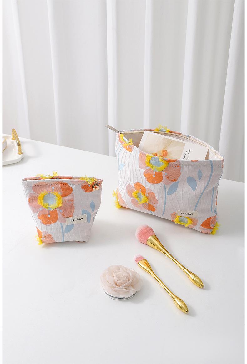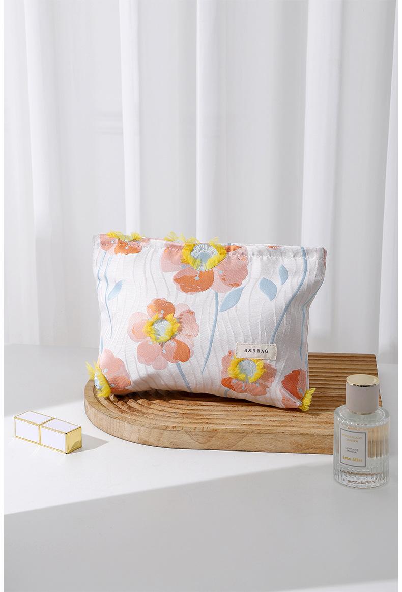 Compra Bolsa de cosméticos portátil bordada tridimensional estilo coreano de gran capacidad, neceser de mano para lápiz labial y cuidado de la piel, bolsa de almacenamiento portátil al por mayor en Joom.pro