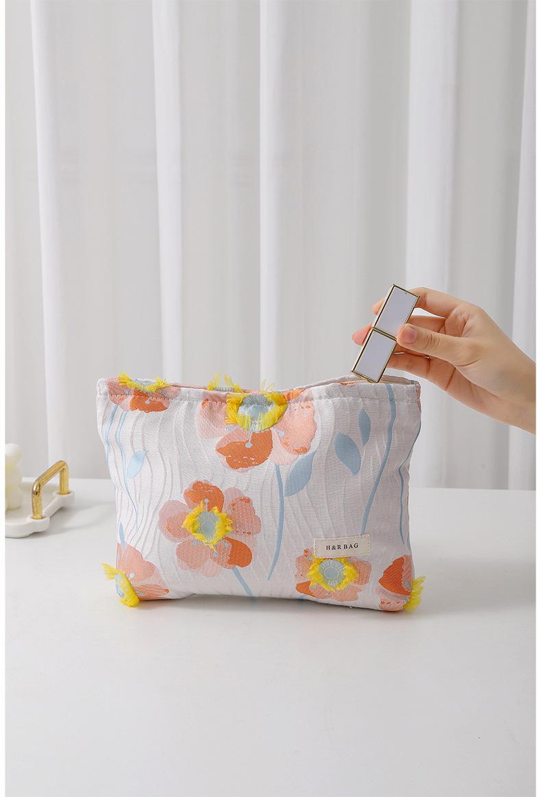 Bolsa de cosméticos portátil bordada tridimensional estilo coreano de gran capacidad, neceser de mano para lápiz labial y cuidado de la piel, bolsa de almacenamiento portátil