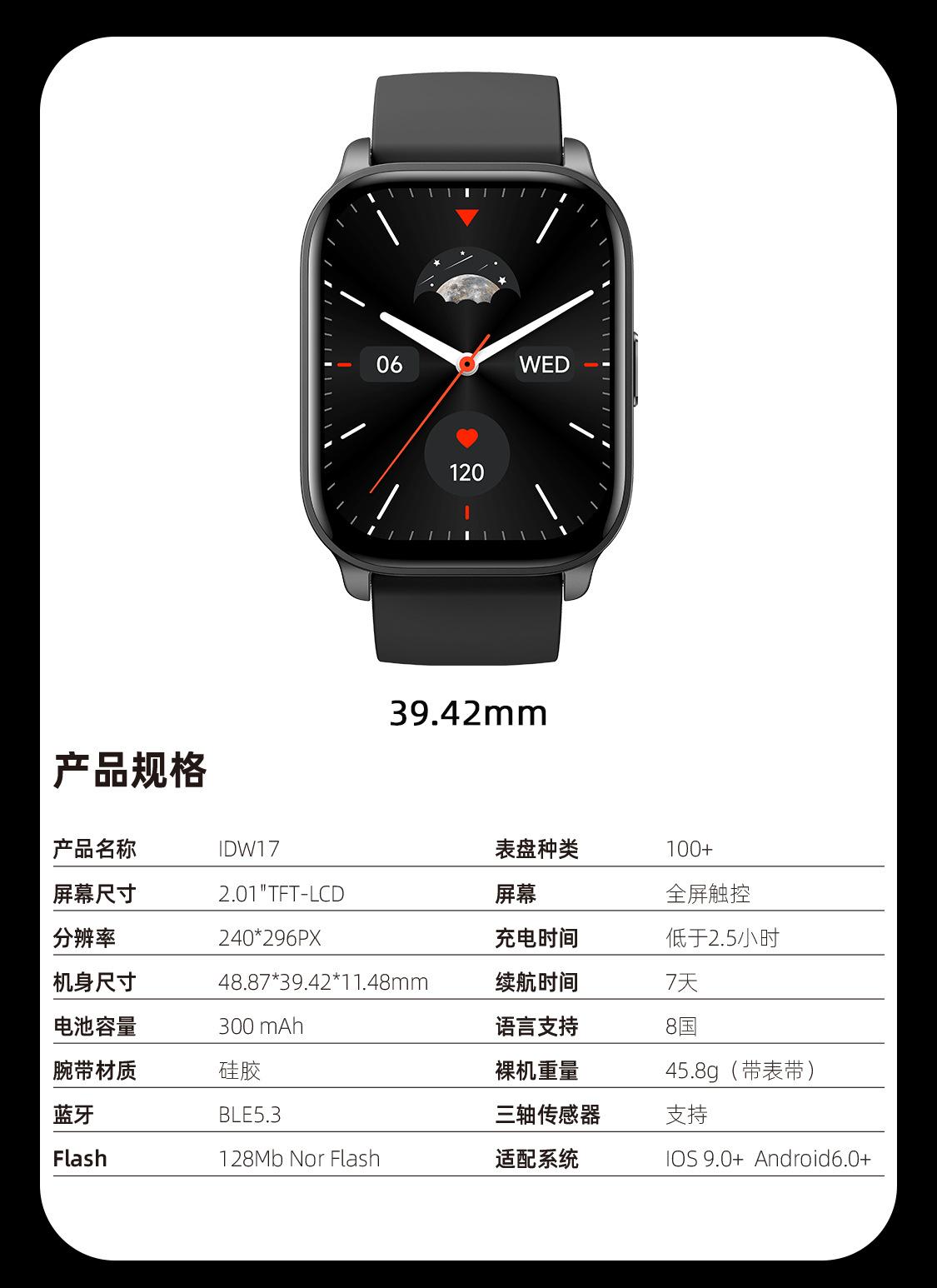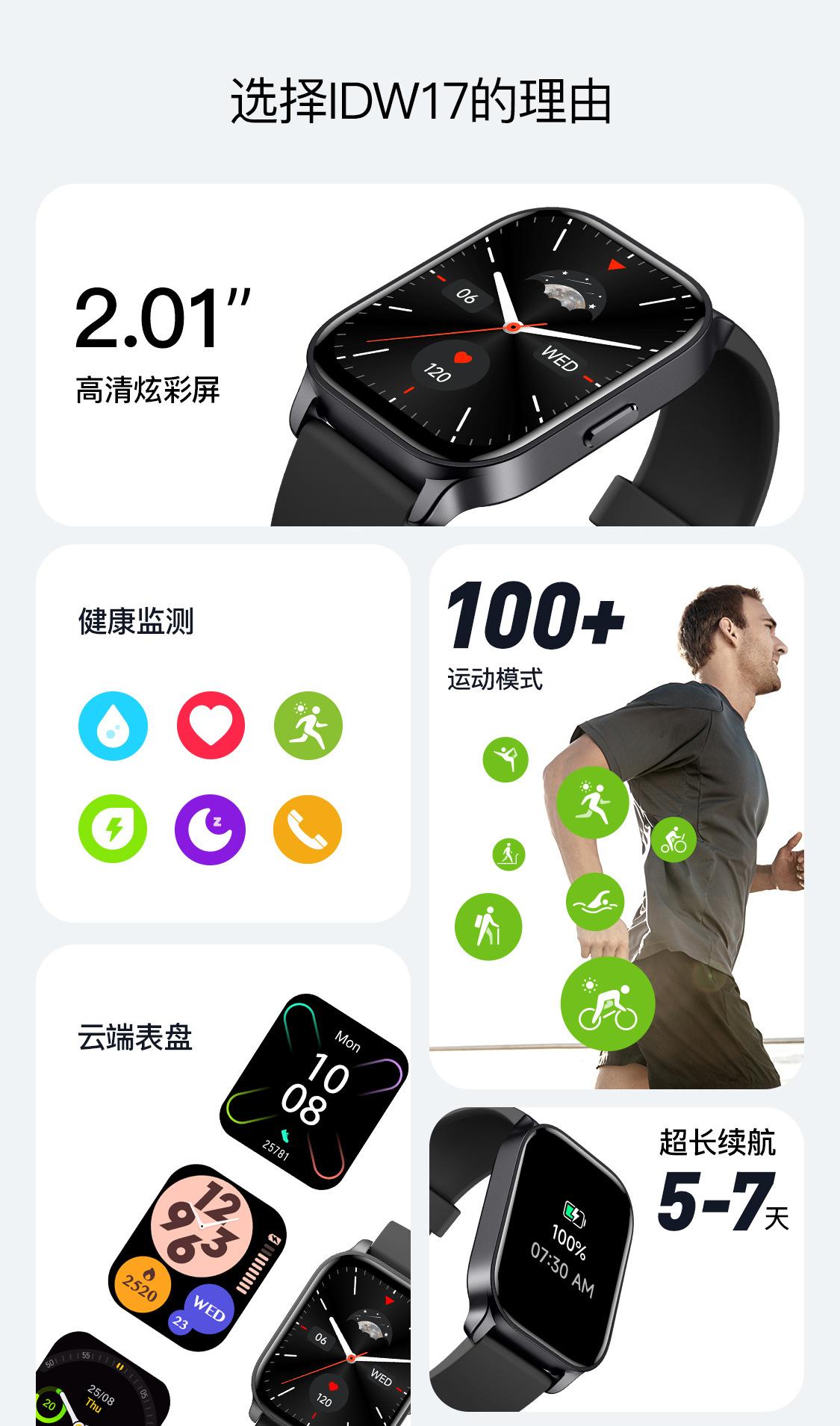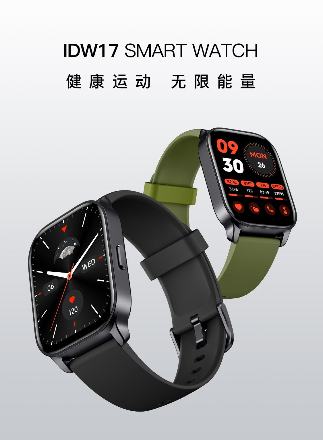 Reloj inteligente transfronterizo IDW17 con llamadas Bluetooth, monitor de ritmo cardíaco, oxígeno en sangre y asistente de voz.