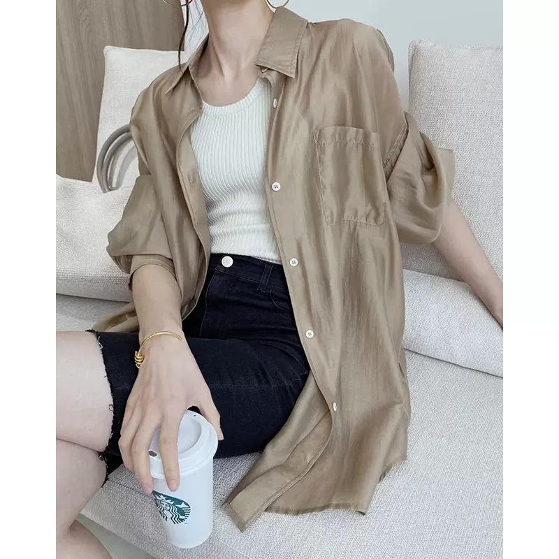 Camisa francesa de protección solar para mujer, blusa de seda fina de verano, cárdigan exterior, diseño superior Sense Niche