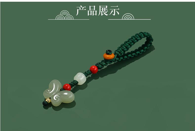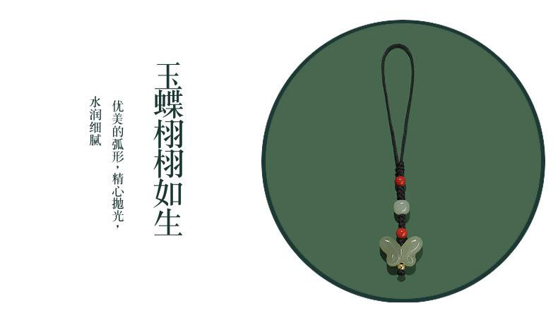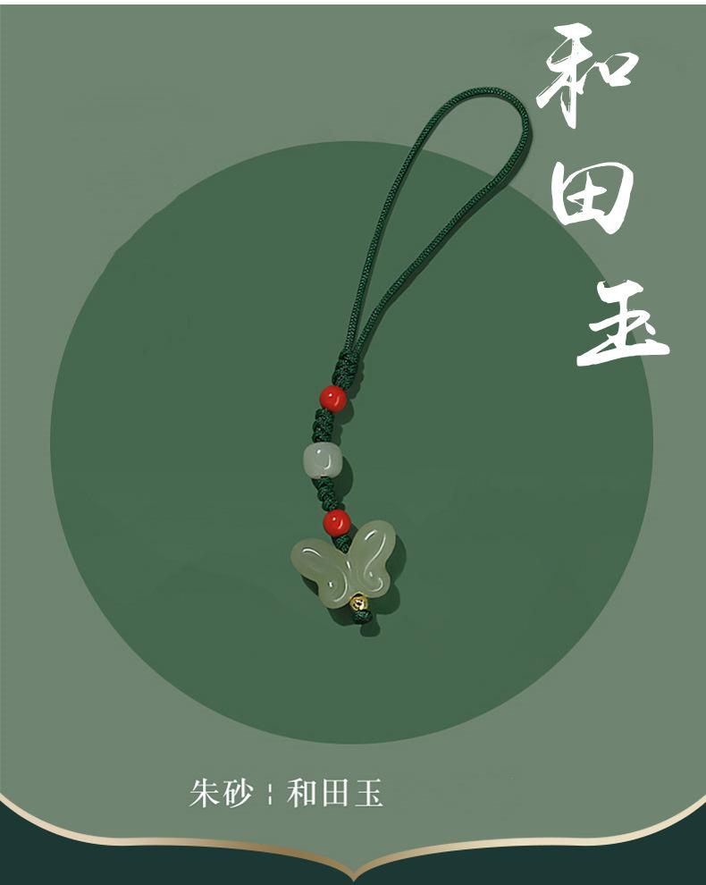 Colgante de cadena para teléfono móvil con forma de mariposa de agua clara de jade hetiano natural, colgante pequeño para mujer, llavero, bonito bolso, joyería